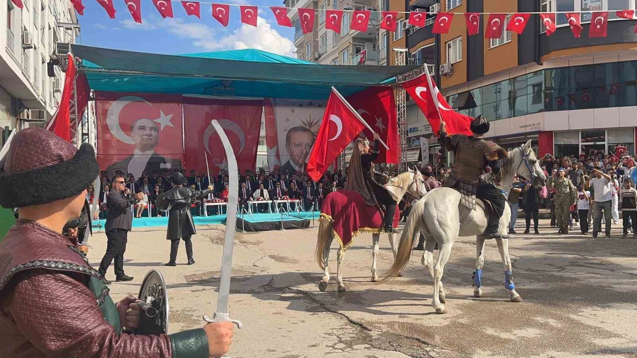 Osmaniye’de 29 Ekim Cumhuriyet Bayramı’nın 102’nci yıl dönümü düzenlenen törenle kutlandı. Törende öğrencilerin kılıç kalkan ve atla yaptıkları köklerin şahlanışı gösterisi büyük ilgi gördü.