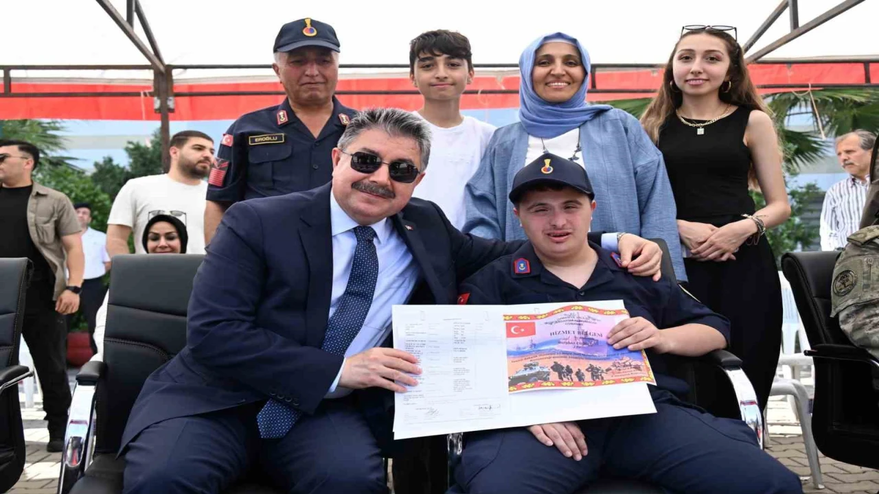 Konuşmaların ardından bir günlük askerlik görevini tamamlayan engelli gençlere protokol üyeleri tarafından terhis belgeleri takdim edildi.