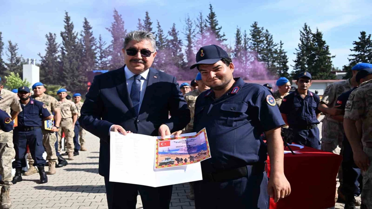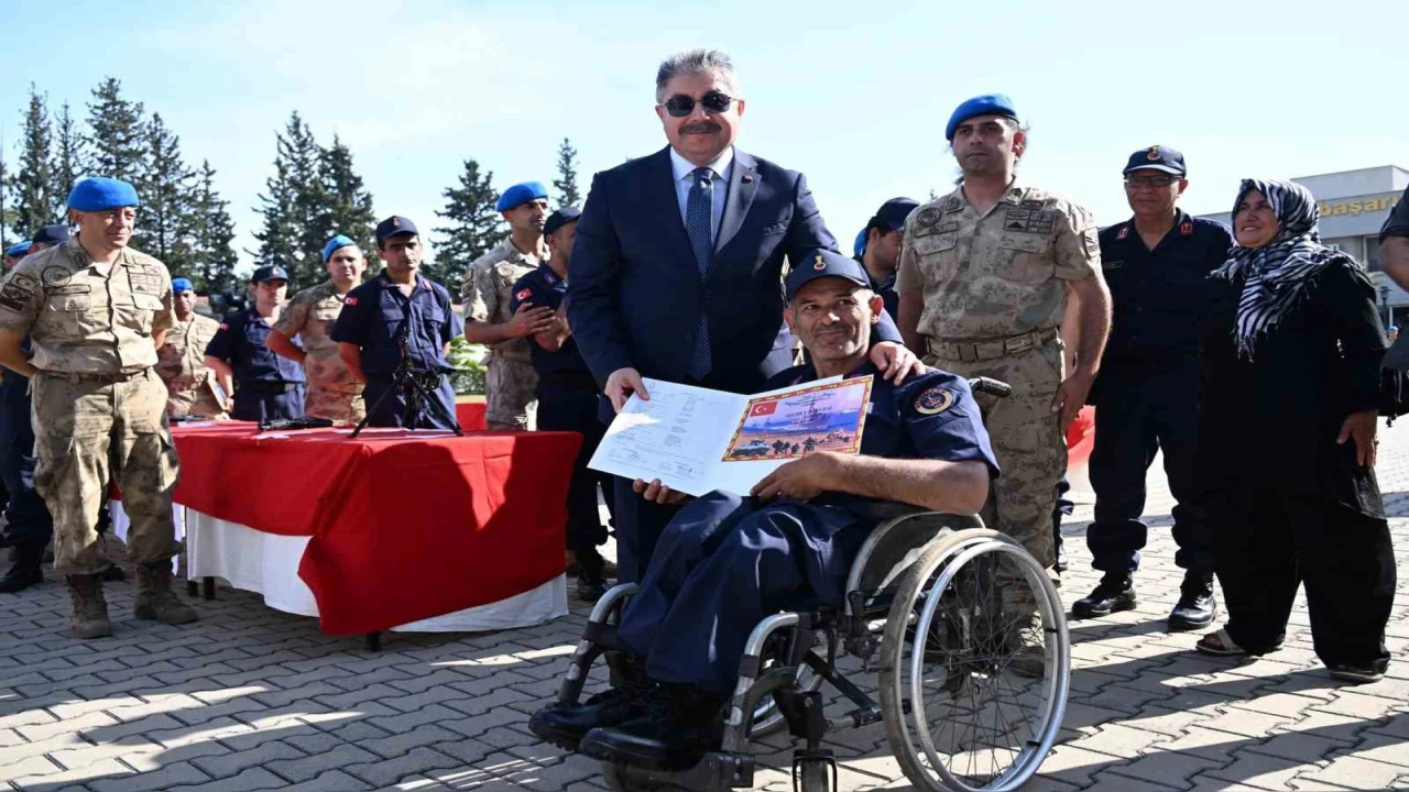 Osmaniye İl Jandarma Komutanlığı tarafından temsili askerlik uygulaması nedeniyle İl Jandarma Komutanlığı’nda tören gerçekleştirildi. Saygı duruşu ve İstiklal Marşı’nın okunmasıyla başlayan törende engelli gençler ellerini Türk bayrağı üzerine koyarak yemin etti. Törende konuşan Osmaniye Valisi Erdinç Yılmaz, "Bugün 26 Mehmetçiğimiz, yürekleri ve inançlarıyla şanlı Türk Ordusu’nun üniformasını giyerek asker oldular. Bu onuru yaşayan evlatlarımızı ve onları yetiştiren anne-babalarını yürekten kutluyorum. Her Türk gencinin bu şerefli orduya mensup olduğunda duyduğu gurur çok büyüktür. Terhislerinin hayırlı olmasını diliyor, uygulamayı gerçekleştiren İl Jandarma Komutanlığımıza teşekkür ediyorum" dedi.