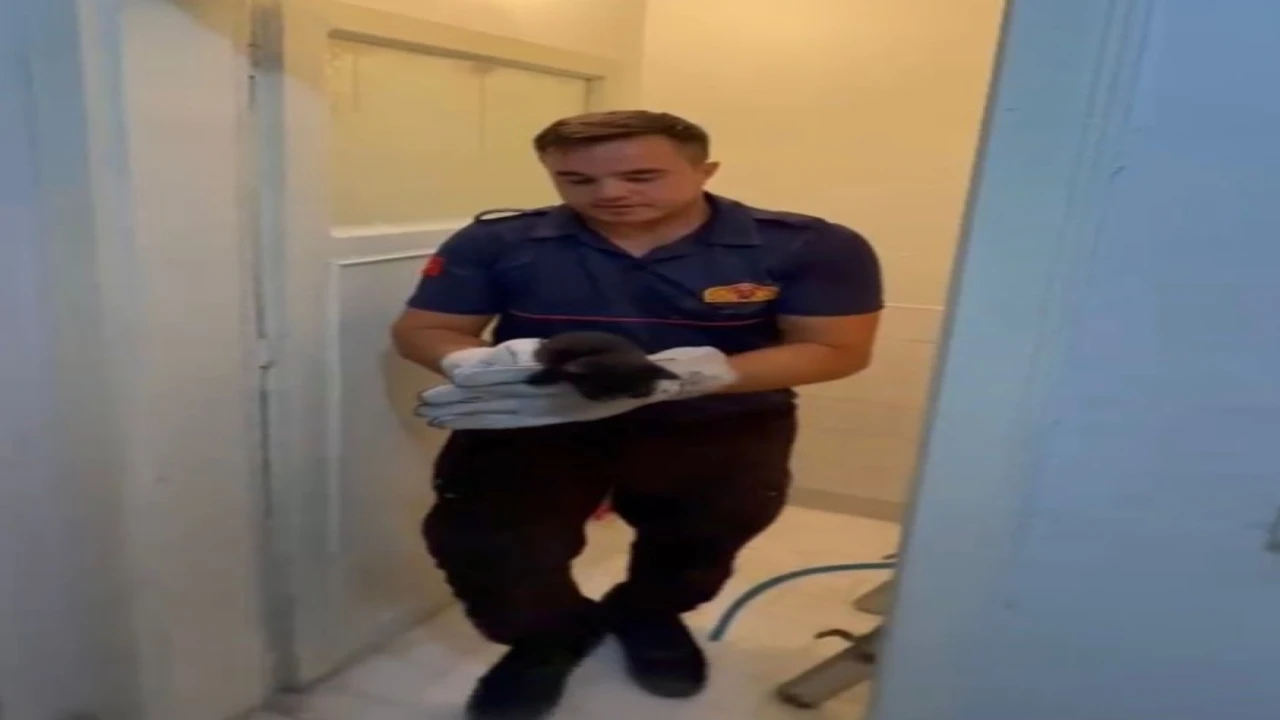 Osmaniye’de havalandırma boşluğuna düşerek mahsur kalan yavru kedi, itfaiye ekiplerince kurtarıldı.