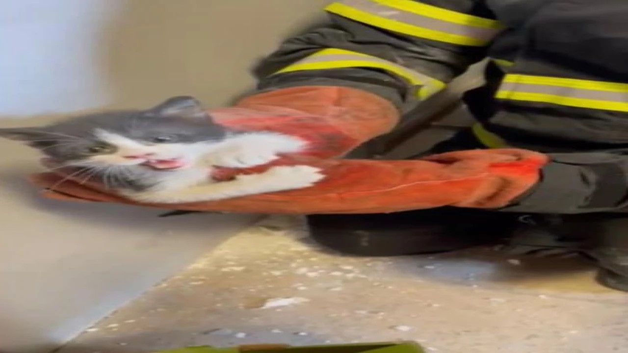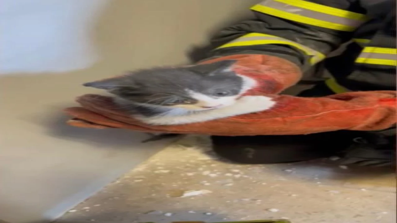 Alibeyli Mahallesi’ndeki Osmaniye Belediyesi Kent Müzesi’nin panel duvarından kedi sesi geldiğini fark eden çalışanlar durumu itfaiye ekiplerine bildirdi. Adrese gelen itfaiye ekipleri yavru kediyi kurtarmak için çalışma başlattı. Ekiplerin duvarı kırmasıyla yavru kedi bulunduğu yerden çıkarıldı.
