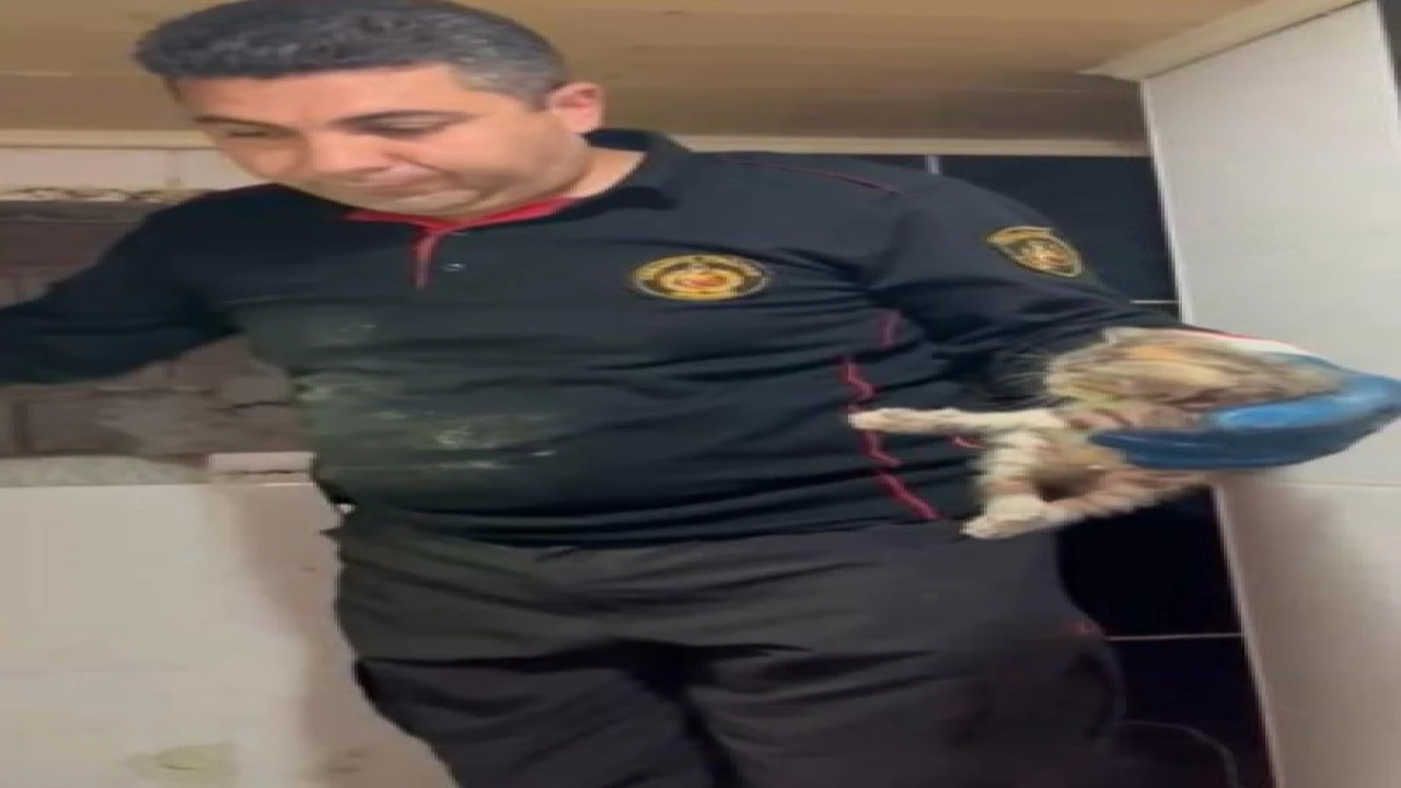 OSMANİYE’DE MAHSUR KALAN YAVRU KEDİYİ İTFAİYE EKİPLERİ KURTARDI