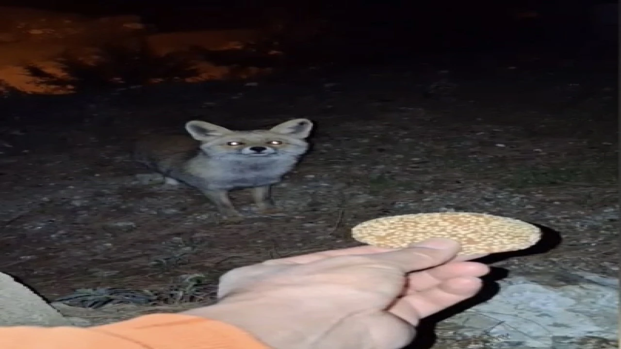 Osmaniye’de Amanos Dağları eteklerinde yer alan Zorkun Yaylası doğal güzelliği, serin havası ve insanlarla iç içe olan yaşamıyla dikkat çekiyor. Gece saatlerinde ortaya çıkan bir tilki, vatandaşlar tarafından kendisine ikram edilen Osmaniye’nin meşhur bayram kömbesini fark edince büyük bir merakla yaklaştı. Bir süre çevresini koklayan tilki, kömbeyi aldıktan sonra etrafta biraz dolaştı. Ardından kömbeyi de yanına alarak gözden kayboldu.