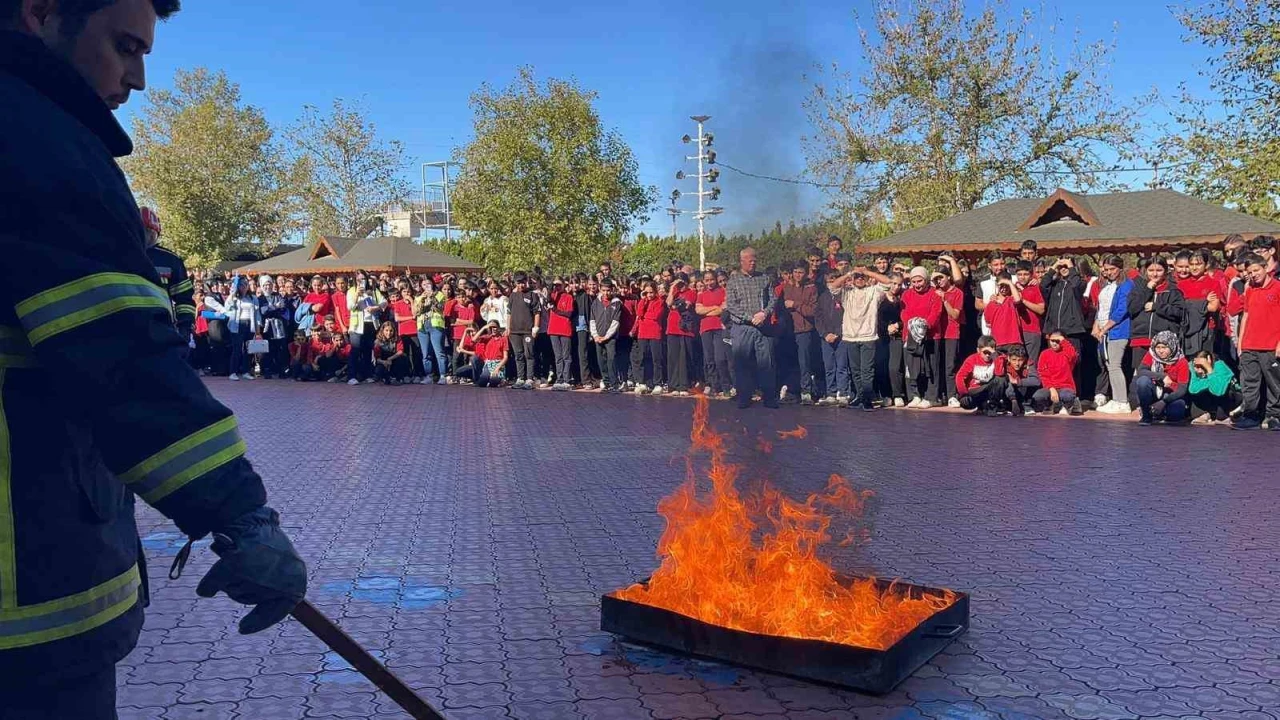 Tatbikat kapsamında hazırlanan yapay yangın, ekiplerin uygulamalı müdahalesiyle söndürüldü. Gerçeğini aratmayan tatbikatta öğrenciler hem deprem ve yangın anında doğru davranış biçimlerini öğrendi hem de muhtemel afetlere karşı hazırlıklı olmanın önemini pekiştirdi.