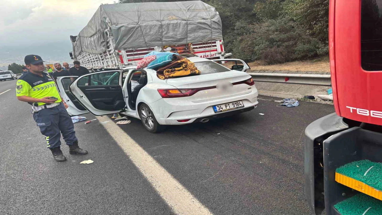 Kaza, Bahçe ilçesi Kızlaç Tüneli mevkiinde meydana geldi. Sürücüsü öğrenilemeyen 34 PT 9184 plakalı otomobil, aynı istikamette ilerleyen 01 AHJ 801 plakalı tıra arkadan çarptı. Çarpmanın şiddetiyle otomobilde bulunan 4 kişi ağır yaralandı. Kazayı gören vatandaşların ihbarı üzerine olay yerine sağlık, itfaiye ve jandarma ekipleri sevk edildi. Araçta sıkışan yaralılar, itfaiye ekiplerinin çalışmasıyla çıkarıldıktan sonra ambulanslarla çevre hastanelere kaldırıldı. Yaralıların hayati tehlikelerinin devam ettiği öğrenildi.