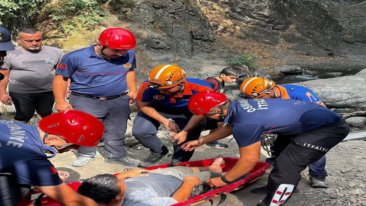 Osmaniye’nin Sarısu Şelalesi’nde doğa yürüyüşüne çıkan bir kişi, kayalıklarda dengesini kaybederek ayağından yaralandı.