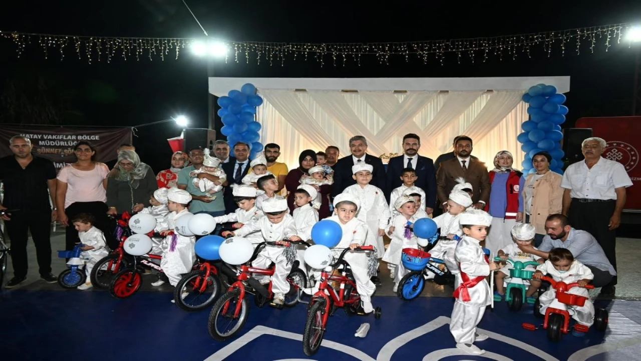Hatay Vakıflar Bölge Müdürlüğü’nce Osmaniye Polisevi’nde düzenlenen toplu sünnet merasiminde 28 çocuk ve aileleri bir araya geldi. Programa Hatay Vakıflar Bölge Müdürü Adem Bozkurt, İl Kültür ve Turizm Müdürü Burhan Torun ve aileler katıldı. Protokol mensuplarınca sünnet olan çocuklara bisiklet ve altın hediye edildi.