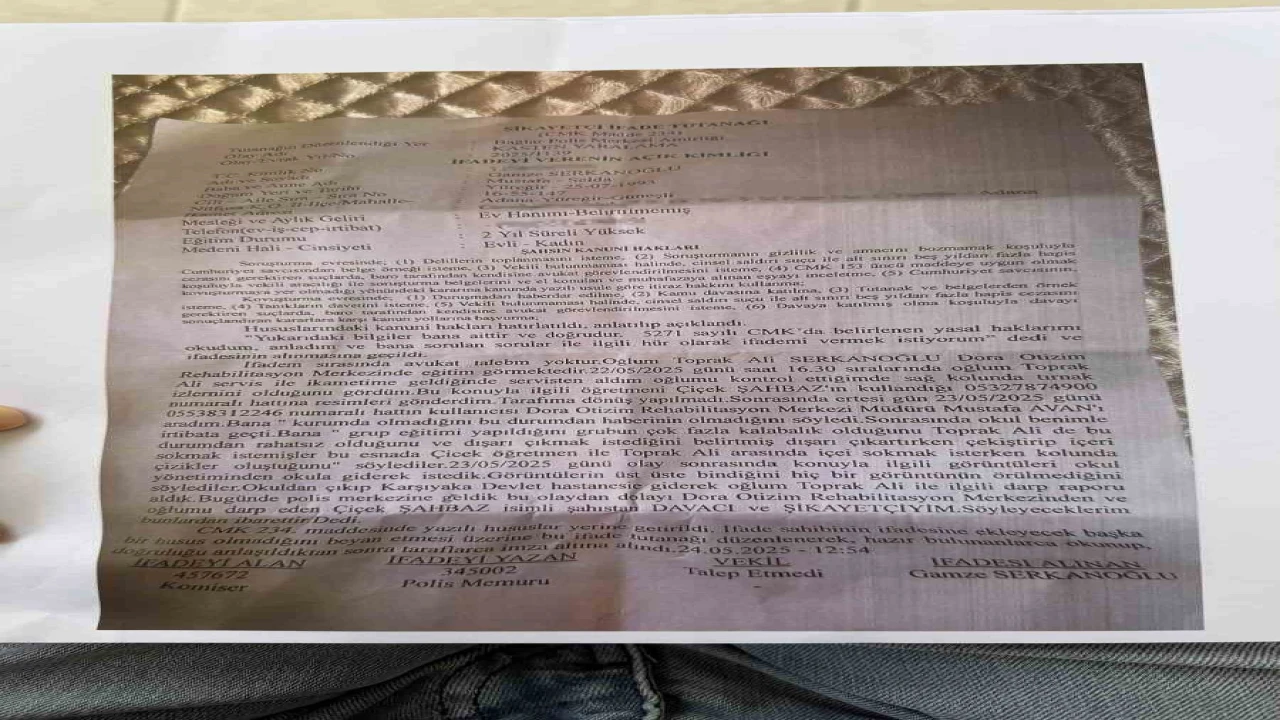ADANA'DA BİR ÖZEL EĞİTİM MERKEZİNDE OTİZMLİ 7 YAŞINDAKİ TOPRAK ALİ'NİN ÖĞRETMENİ TARAFINDAN DARBEDİLDİĞİ İDDİASI ÜZERİNE AİLE SUÇ DUYURUSUNDA BULUNDU. OLAYLA İLGİLİ SORUŞTURMA BAŞLATILDI.