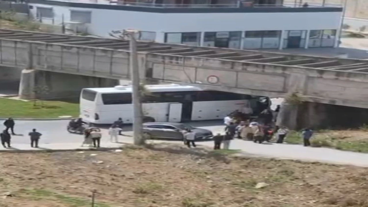 Mersin’in Tarsus ilçesinde yolcu otobüsü köprü altına sıkıştı.