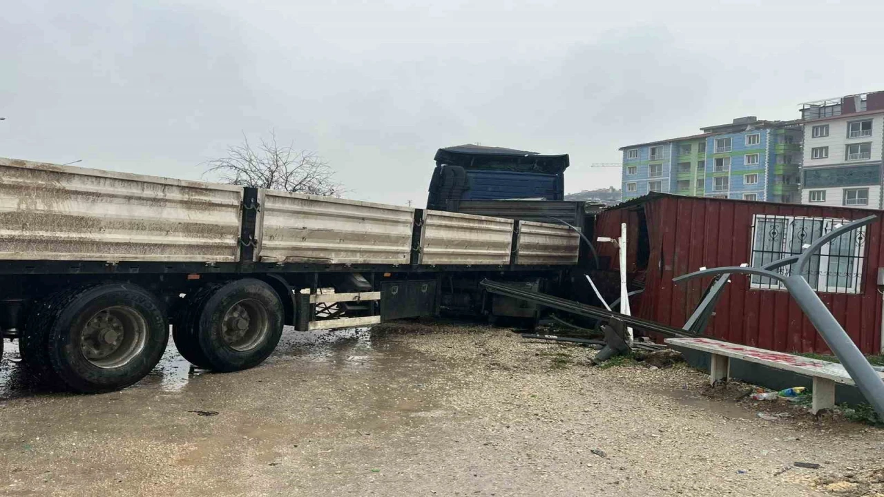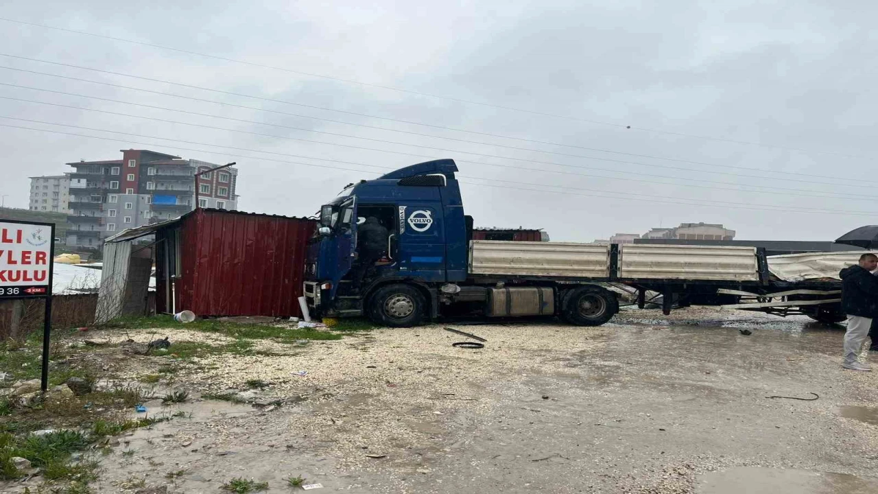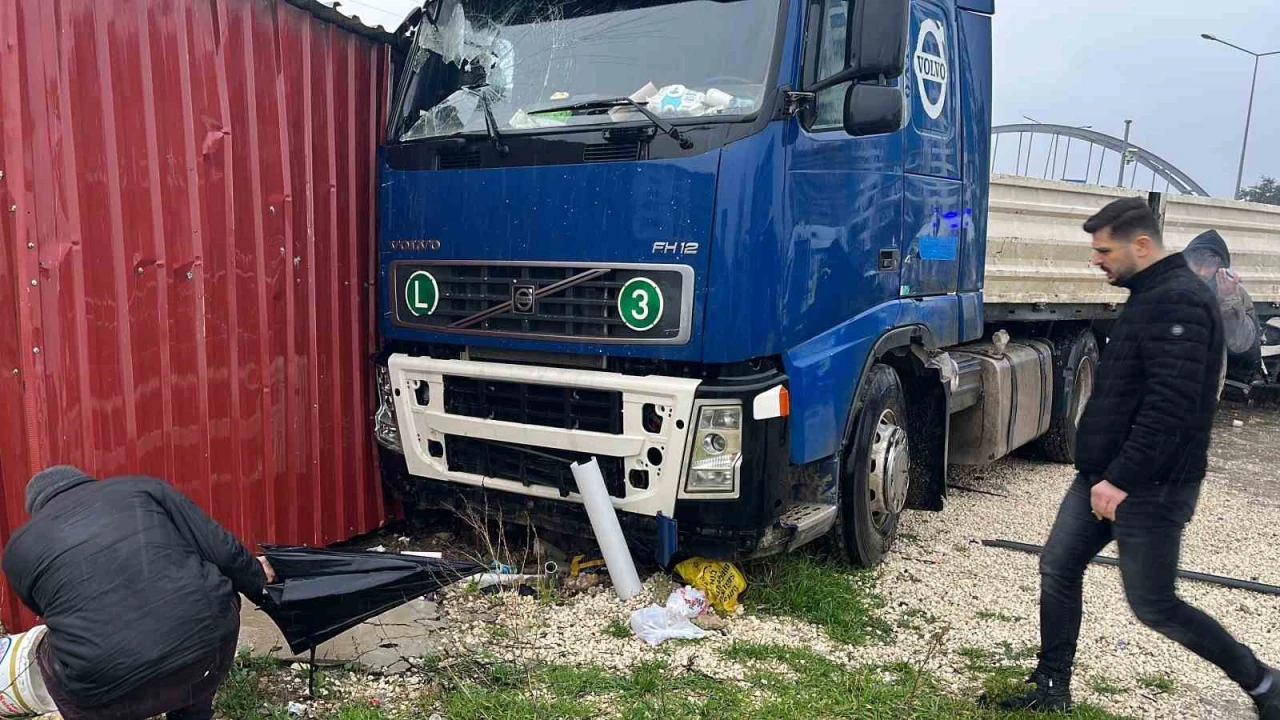 HATAY (İHA) - Hatay'da otobüs ile çarpışan tır, kontrolden çıkarak yol kenarında bulunan barakaya daldı.