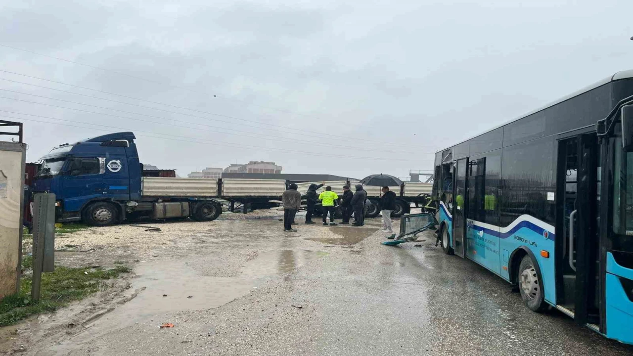 Kaza, Antakya ilçesi çevreyolu Adliye binası mevkiinde yaşandı. Seyir halindeki 31 AYT 240 plakalı Volvo marka tır, aynı istikamette ilerleyen 31 HO 5535 plakalı otobüsle çarptı.