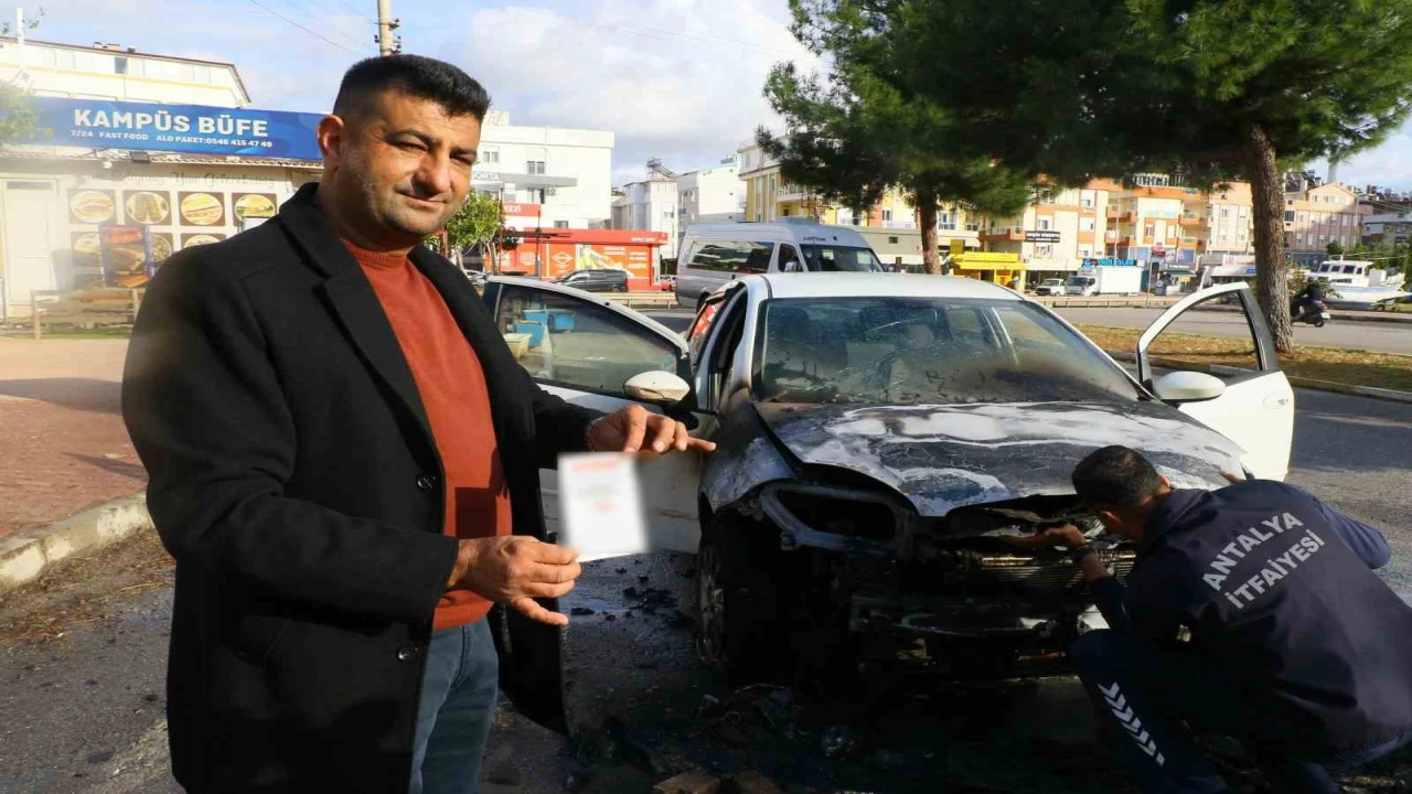 Olay, saat 15.00 sıralarında Antalya’nın Kepez ilçesi Yeşilyurt Mahallesi 3705 Sokak üzerinde meydana geldi. Edinilen bilgiye göre, Mehmet Öz isimli vatandaş, LPG sistemi takılı olan 07 ATK 158 plakalı Fiat marka aracındaki arıza nedeniyle Akdeniz Sanayi Sitesi’nde bulunan bir yetkili servise gitti. Serviste yapılan kontrollerin ardından aracın LPG sisteminin enjektörü değiştirildi. Servisten garanti belgesini de alarak yola çıkan Mehmet Öz, yaklaşık 1 kilometre gittikten sonra aracında bir anda uyarı ışıkları yanmaya ve aracın motor kısmından dumanlar çıkmaya başladı. Hemen aracı güvenli bir noktaya çeken Öz, çevredeki vatandaşların da yardımıyla yangın tüpleri ile yanan araca müdahale etmeye çalıştı. Araç sahibi ve vatandaşların müdahalesinin yetersiz kalması üzerine 112’ye durumun bildirilmesi ile olay yerine itfaiye ekibi sevk edilirken, kısa sürede alevler aracın motor kısmını sardı.