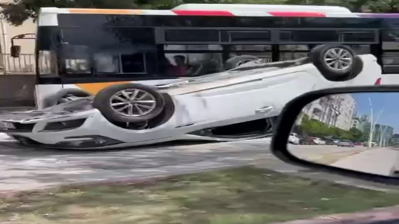 Adana’da sürücüsünün direksiyon hakimiyetini kaybettiği otomobilin refüjdeki ağaca çarpıp takla attı, o anlar güvenlik kamerasına saniye saniye yansıdı.