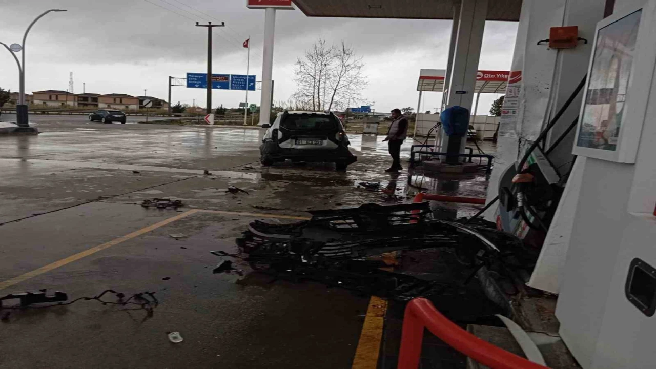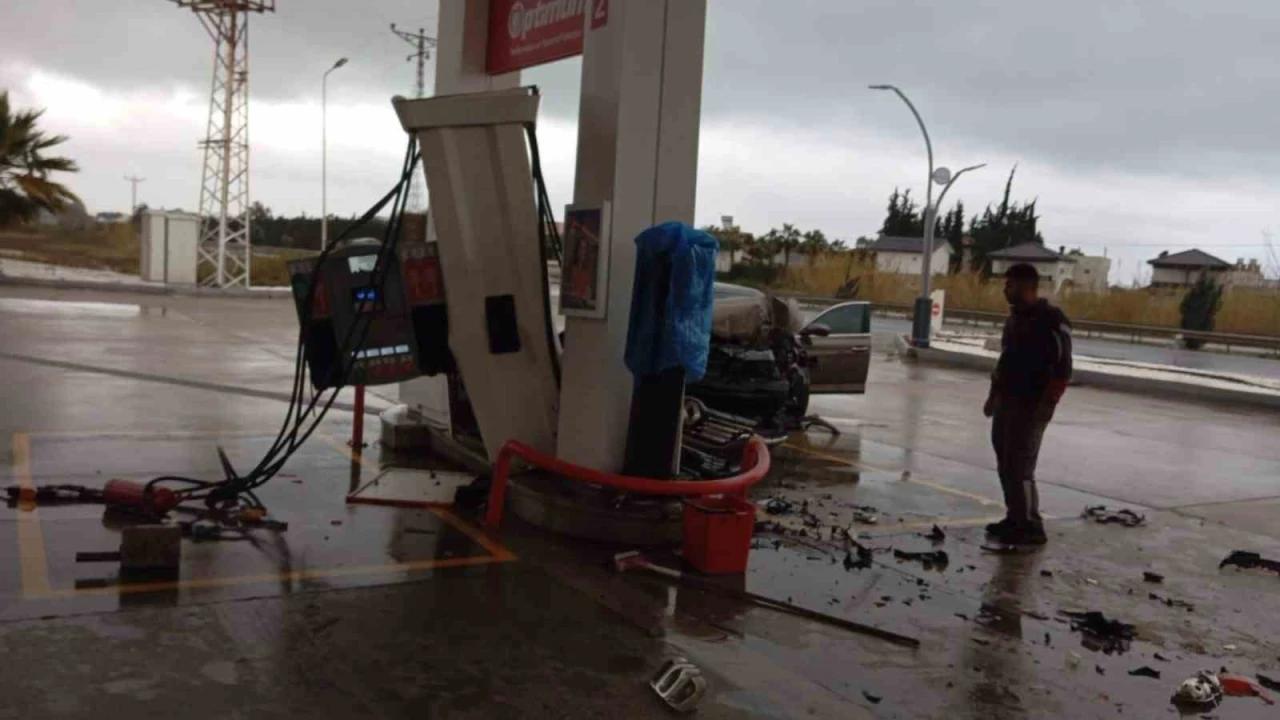 Antalya’da D-400 kara yolunda seyir halindeki otomobil akaryakıt istasyonuna daldı. Otomobil, yakıt alan bir başka araca çarpıp yakıt pompasını parçalarken, pompa görevlisi aracın altında kalmaktan saniyelerle kurtuldu.