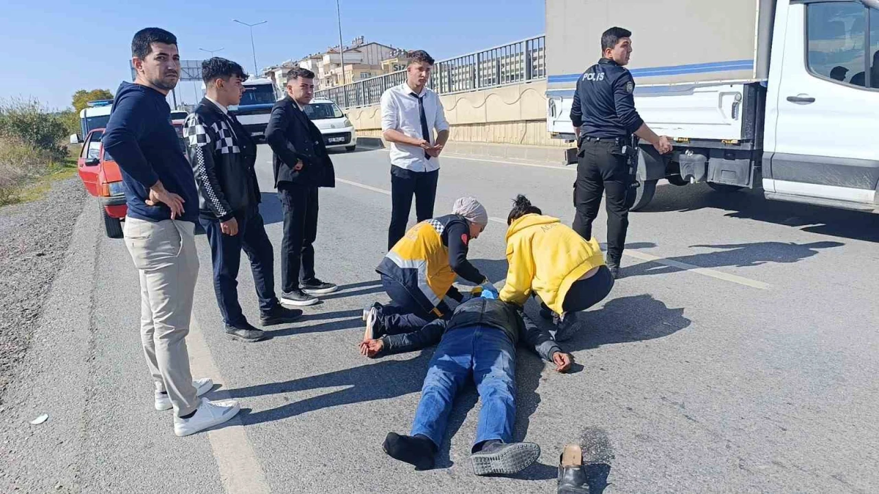 Antalya’da motosiklet ile otomobilin çarpışması sonucu meydana gelen trafik kazasında çarpışmanın etkisiyle yaklaşık 50 metre sürüklenen motosiklet sürücüsü yaralandı.