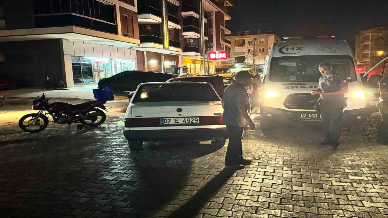 Kaza, dün akşam saat 20.10 sıralarında Yeni Mahalle Zafer Caddesi üzerinde meydana geldi. Edinilen bilgiye göre, Rıza Büyükakça Caddesi yönüne seyir halinde olan M.Y. idaresindeki 07 E 4929 plakalı otomobil, karşı yönden gelen M.Ö.’nün kullandığı 07 UT 758 plakalı motosikletle çarpıştı. Kazada motosiklet sürücüsü M.Ö. ayağından hafif şekilde yaralandı. 112 Acil Çağrı Merkezine yapılan ihbar üzerine olay yerine sağlık ve polis ekipleri sevk edildi. Olay yerinde ilk müdahalesi yapılan M.Ö., hastaneye gitmeyi kabul etmedi. Otomobil sürücüsü M.Y.’ye yapılan alkol testinde sürücünün 50 promilin üzerinde alkollü olduğu tespit edildi. M.Y.’nin ehliyetine geçici süreli el konulurken, taraflar ifadesi alınmak üzere karakola götürüldü.