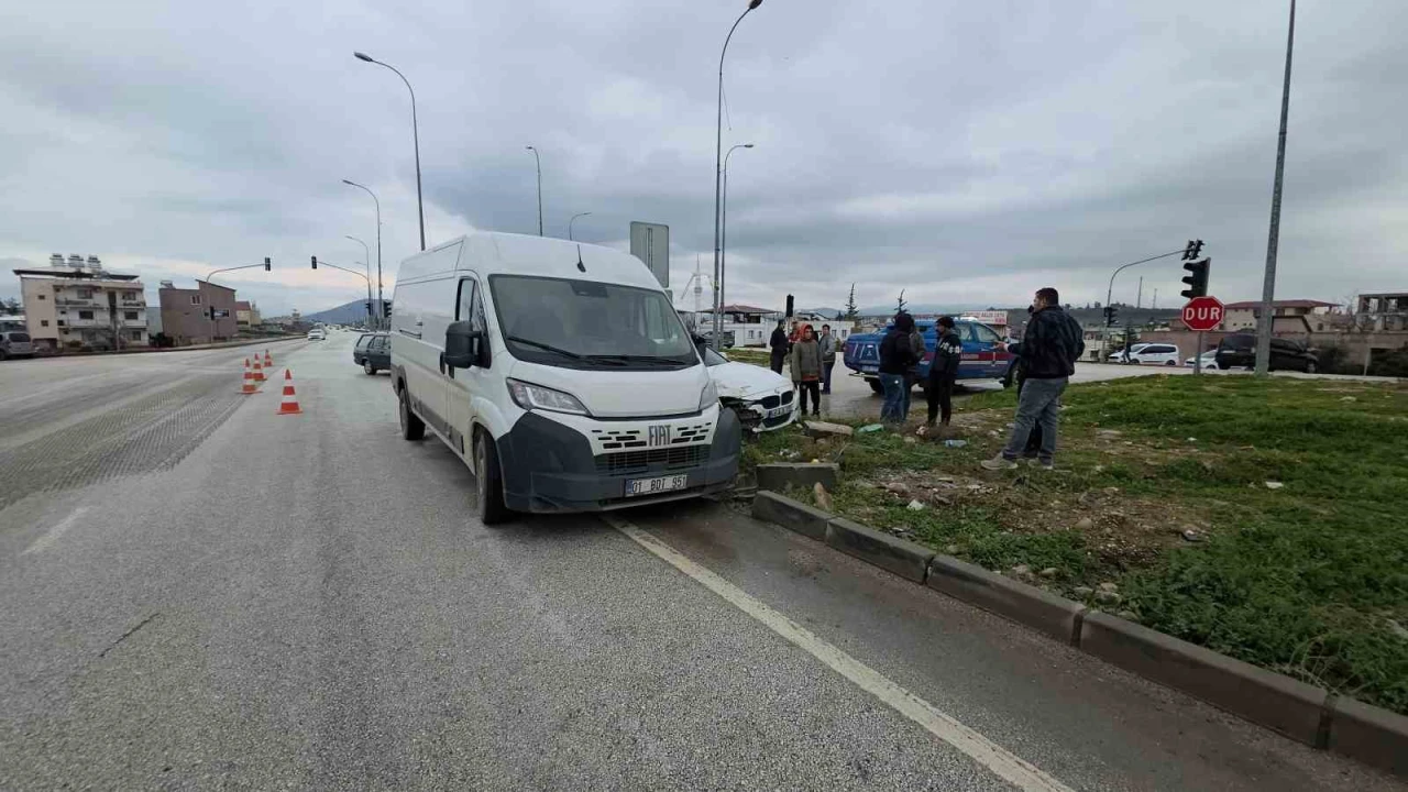 Hatay’da FİAT marka minibüs ile BMW marka otomobilin çarpıştığı kaza araç kamerasına yansıdı. Kazada minibüs sürücüsü yaralandı.