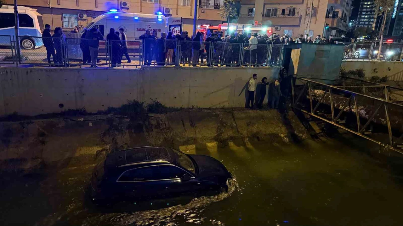 TARSUS’TA OTOMOBİLİ KANAL UÇTU, SÜRÜCÜ VATANDAŞLAR TARAFINDAN ÇIKARILDI