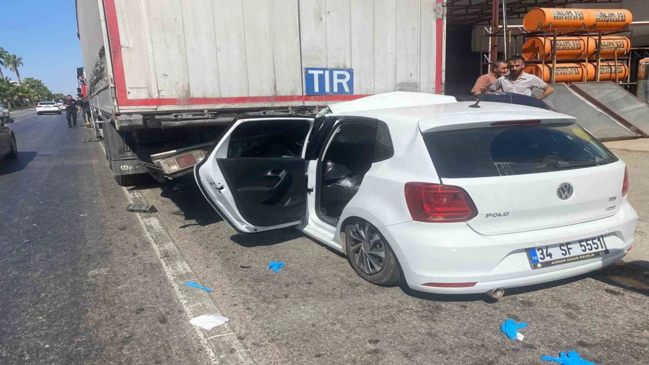 Kaza, Serik ilçesi Yeni Mahalle D 400 karayolunda meydana geldi. Edinilen bilgilere göre H.Ç’ye ait yol kenarında park halinde bulunan 07 BMD 661 plakalı tıra, İbrahim Ö. idaresindeki 34 SF 5551 plakalı Volkswagen marka otomobil çarptı. Kazada tır dorsesinin altına giren otomobilde sıkışan sürücüsü İbrahim Ö., eşi Ö.E.Ö., oğlu A.Ö., ve oğlu yaralandı. Çevredekilerin durumu 112 Acil Çağrı Merkezine ihbarı üzerine bölgeye sağlık, polis ve itfaiye ekipleri sevk edildi. Kaza anında olay yerinden geçen bir doktor, yaralanan 4 kişiye ilk müdahaleyi yaptı. Olay yerine gelen itfaiye ekipleri tarafından araç içerisinde sıkıştıkları yerden çıkarılan yaralılar sağlık ekipleri tarafından ambulanslarla hastaneye kaldırıldı. Kaza sonrası inceleme başlatılırken, tır sürücüsü ifadesi alınmak üzere emniyete götürüldü.