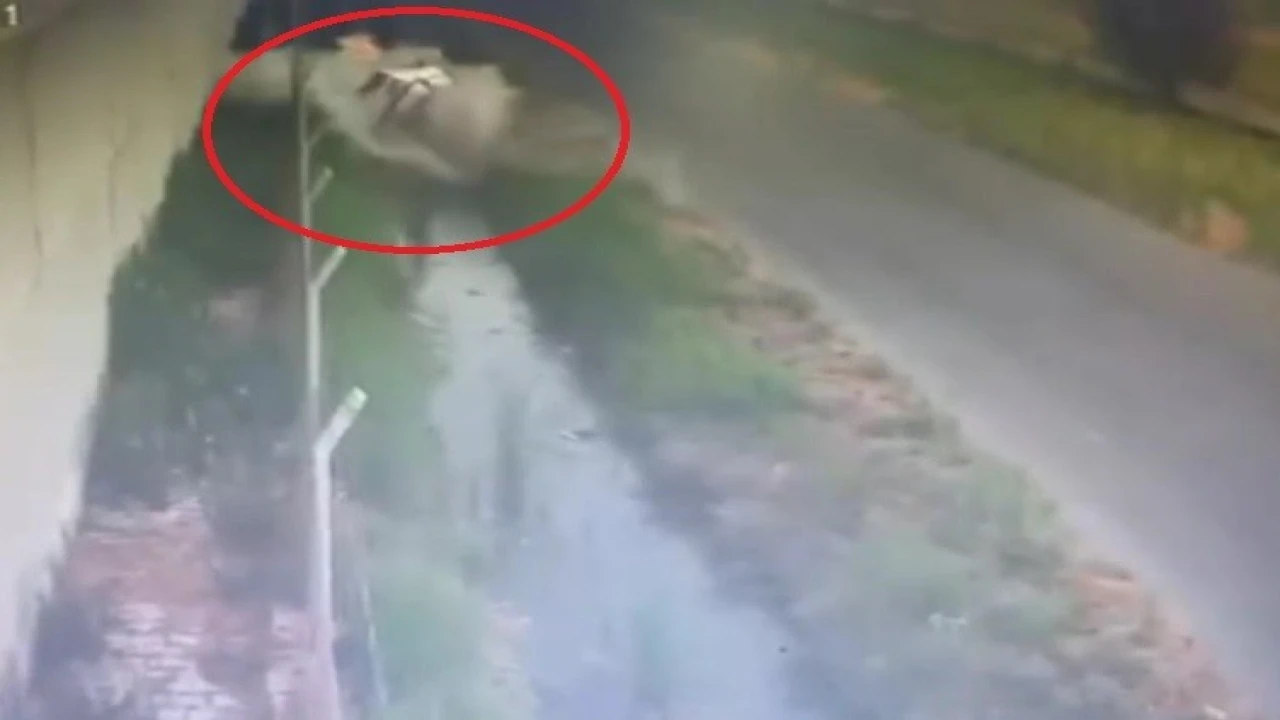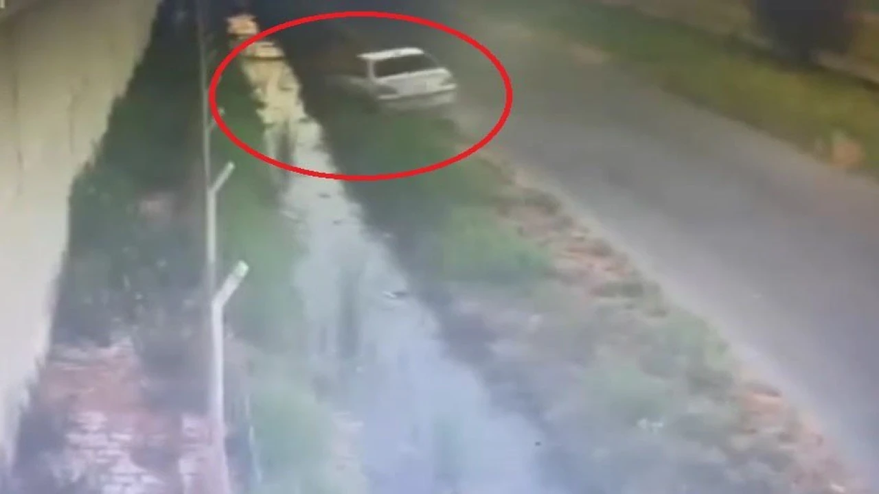 Sürücüsünün kontrolünü kaybettiği otomobilin sulama kanalına düştüğü anlar kameraya yansıdı.