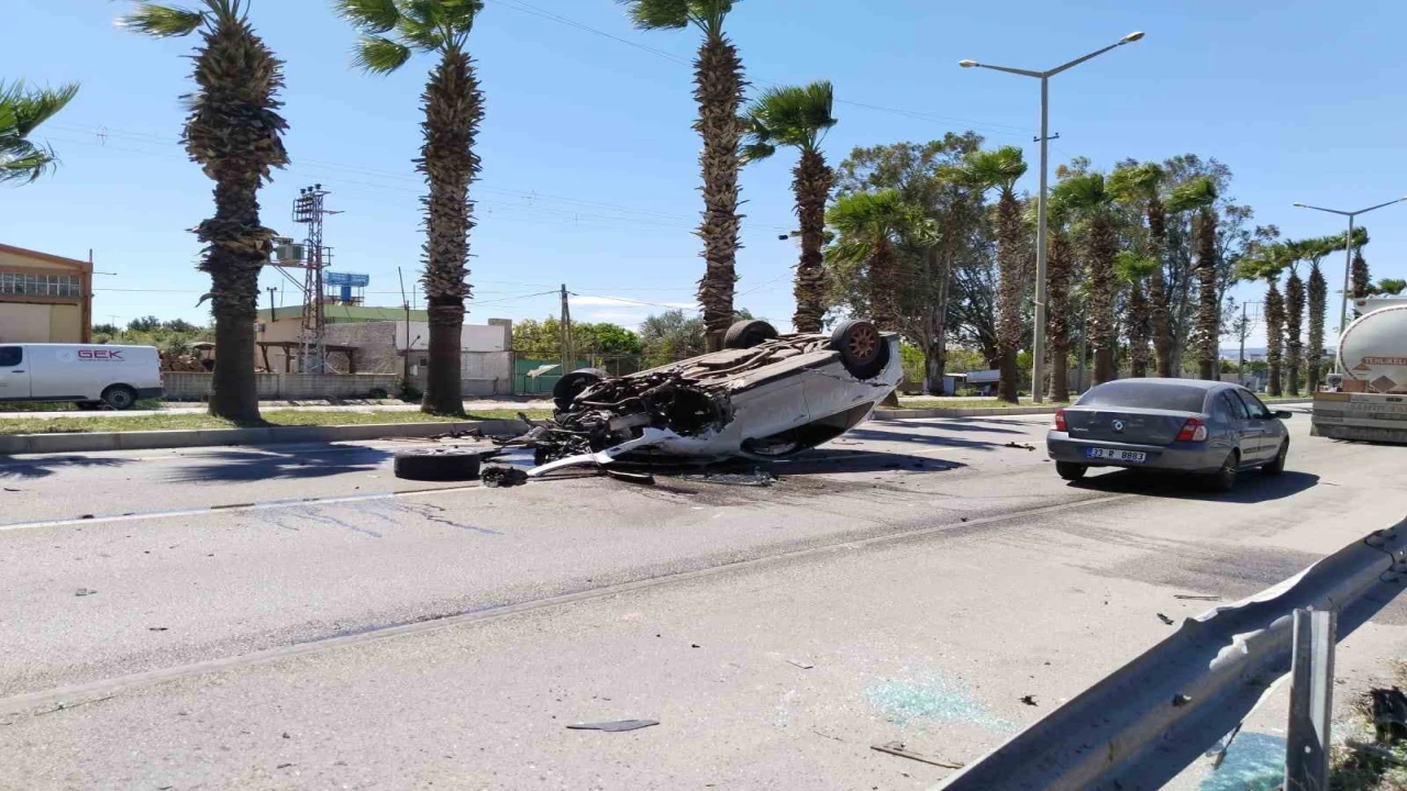 Mersin’in Silifke ilçesinde kaza yaparak ters dönen bir tekeri de kopan otomobilin sürücüsü yara almadan kurtuldu.