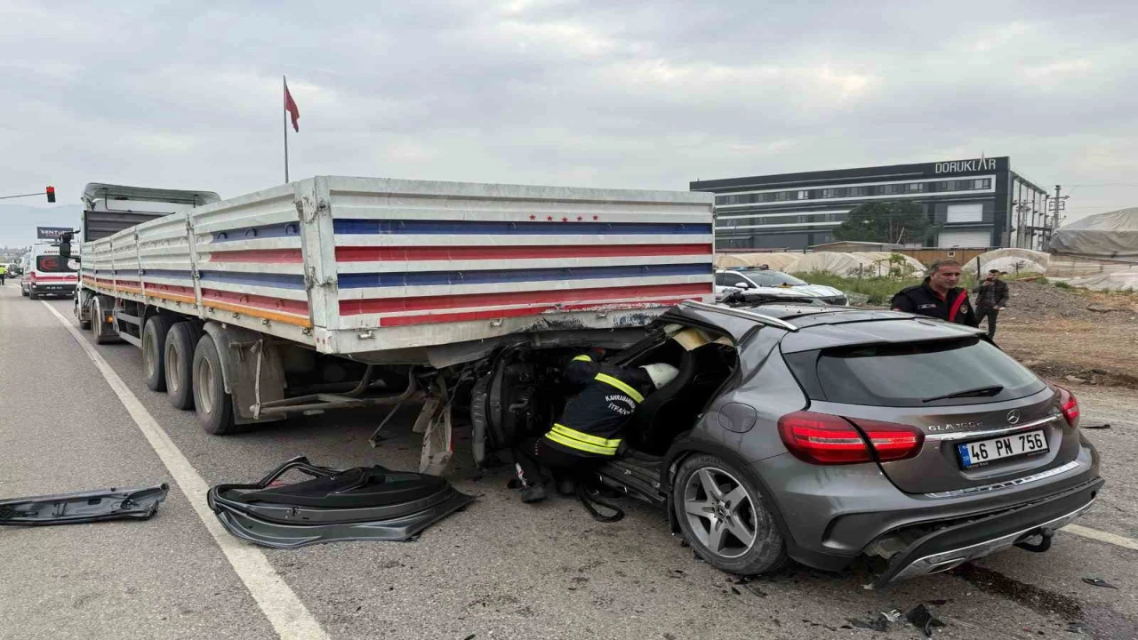 Kaza, Kahramanmaraş-Adana karayolu üzerinde meydana geldi. Alınan bilgiye göre, Mercedes marka 46 PN 757 plakalı otomobil sürücüsünün direksiyon hakimiyetini kaybetmesi sonucu aynı istikamette giden tırın altına girdi. Kazayı görenler sağlık, polis ve itfaiye ekiplerine bildirdi. Araçta yaralanıp sıkışan sürücü, bölgeye ulaşan itfaiye ekipleri tarafından çıkarıldı. Sağlık ekiplerine teslim edilen yaralı hastaneye kaldırıldı.
