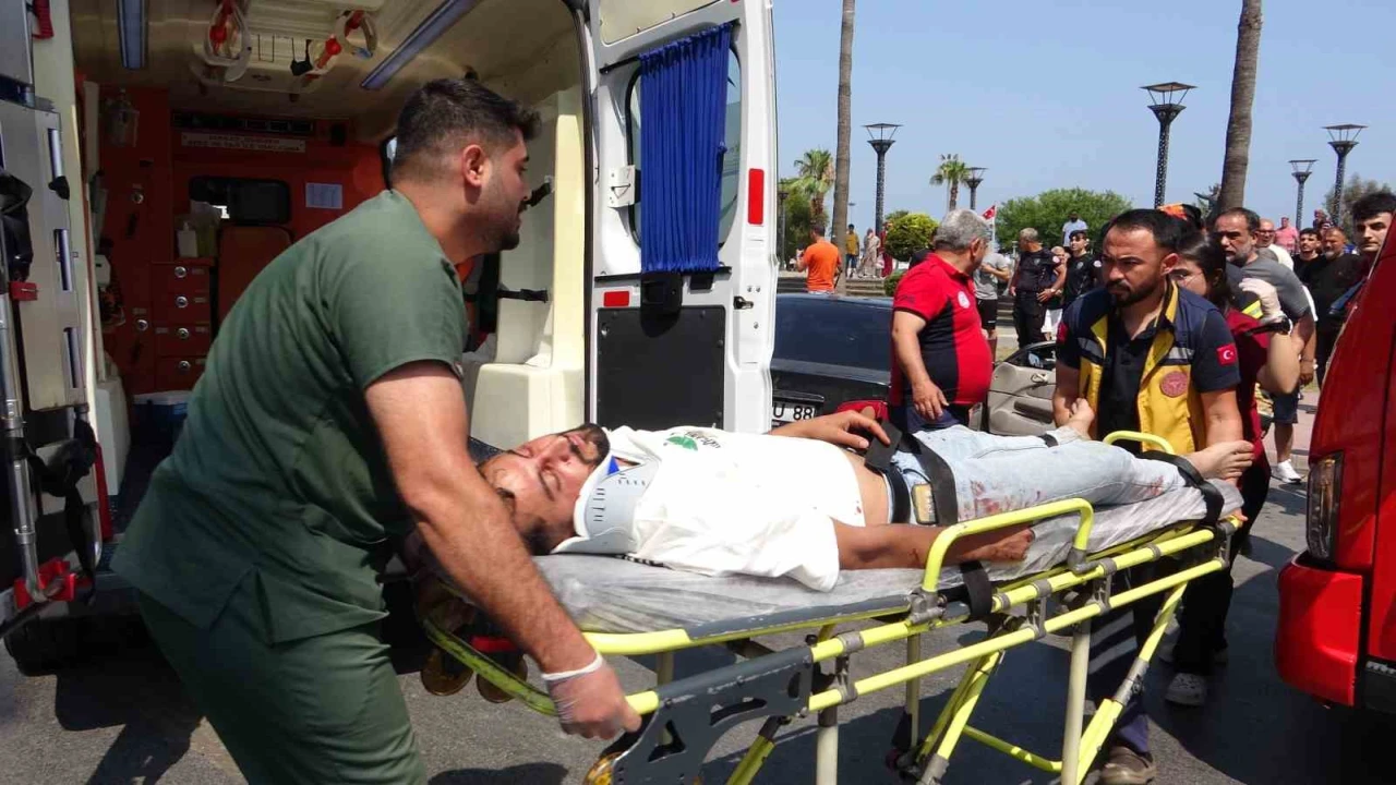 Mersin’de otomobilin kavşakta dönüş yapan motosikletle ve bir başka motosikletle daha çarpıştığı kazada 1’i ağır 3 kişi yaralandı. Motosiklet sürücüsünün kaskının araç içerisine fırlaması ise dikkat çekti.
