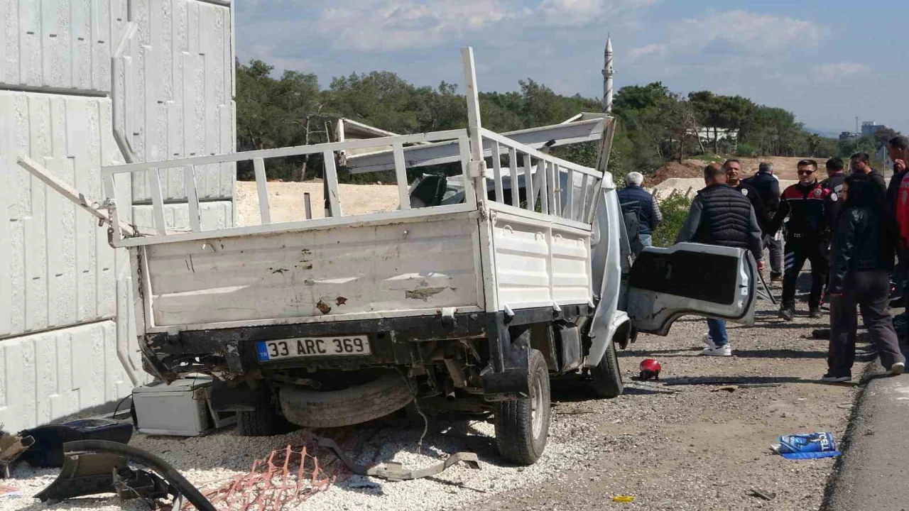 Mersin’de otomobilin çarptığı kamyonet yoldan çıkıp, otoban bağlantı yolunda yapımı süren köprü inşaatının duvarına vurdu. Feci kazada 1 kişi öldü, 1’i ağır 3 kişi de yaralandı.