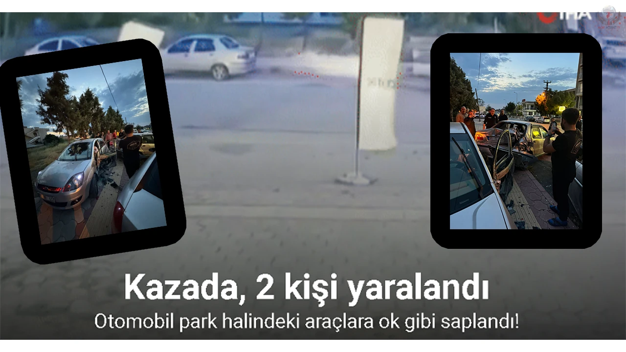 Kazada; yaralı 2 şahıs itfaiye ekipleri tarafından araçtan kurtarılarak sağlık ekipleri tarafından hastaneye sevk edildi. Otomobilin park halindeki araçlara ok gibi saplandığı anlarsa güvenlik kamerasına yansıdı.