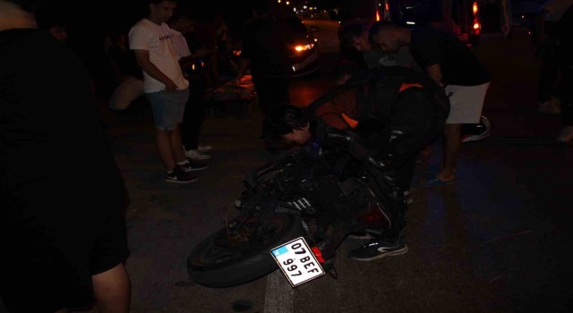Kaza, dün akşam saat 22 10 da ilçeye bağlı Karşıyaka Mahallesi 50. Yıl Caddesi üzerinde meydana geldi. Edinilen bilgiye göre, Süleyman Serdar Ceylan’ın 07 VEF 997 plakalı motosiklet marketten alışveriş yapmak için yolun sağına yanaşmaya çalışan C.Ç.’nın kullandığı 01 APD 035 plakalı otomobilin sağından geçmeye çalışırken önce otomobilin sol tamponuna ardından da yol kenarında bulunan portakal bahçesinin giriş kapısındaki demir direğe çarptı. İhbar üzerine olay yerine gelen sağlık ekipleri tarafından ilk müdahalesi yapılan motosiklet sürücüsü hastaneye kaldırıldı.
