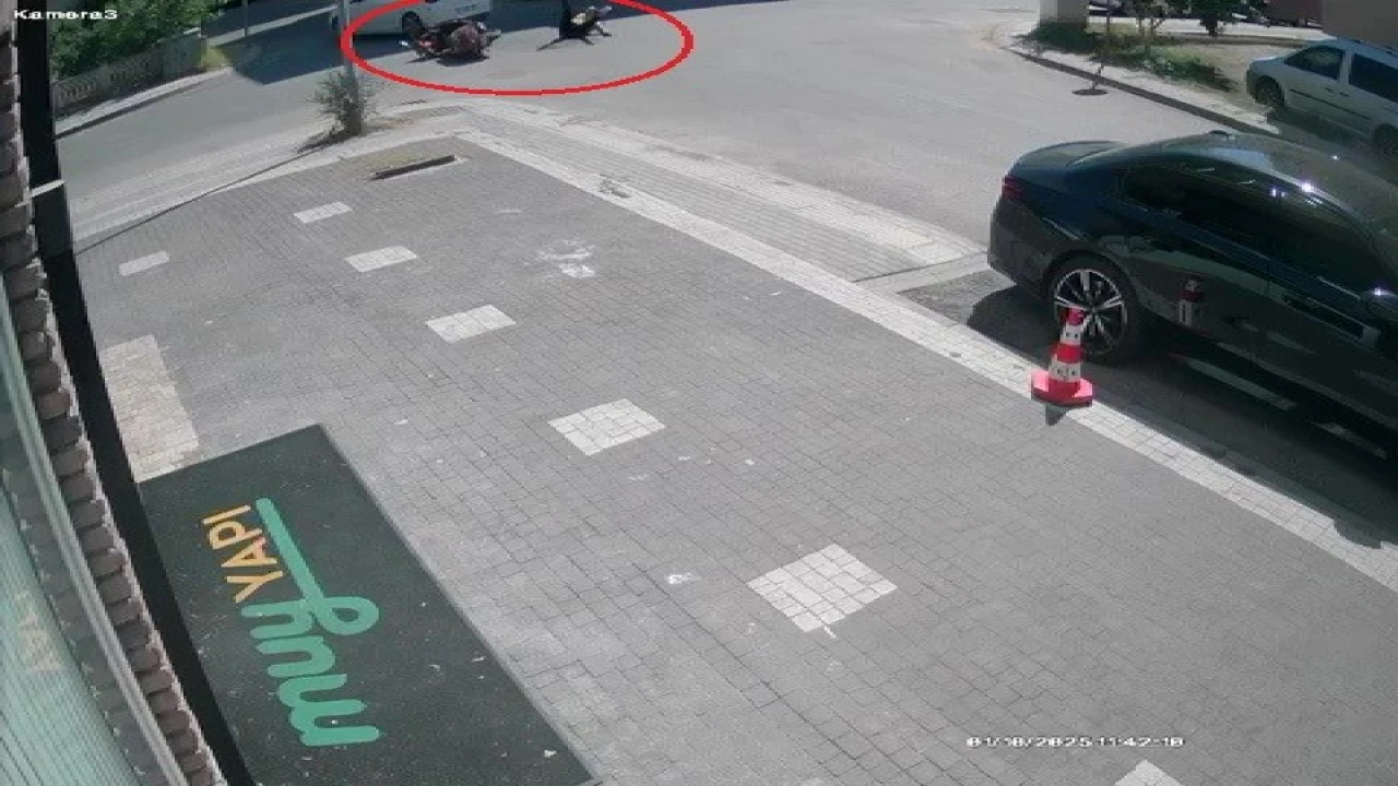 Kaza anı ise bir işyerinin güvenlik kamerasına saniye saniye yansıdı. Görüntülerde otomobile çarpan motosiklet sürücüsünün takla atarak yerde sürüklendiği görülürken, yaralı sürücünün yardımına çevredeki vatandaşlar koştu.
