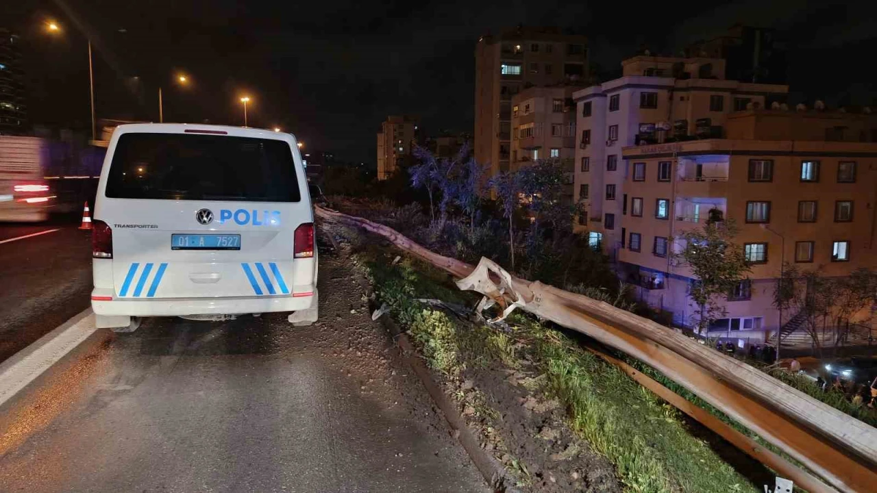 ADANA'DA OTOYOLDA REFÜJE ÇARPIKTAN SONRA LASTİĞİ PATLAYAN OTOMOBİL KONTROLDEN ÇIKARAK 65 METRE ŞARAMPOLE YUVARLADI. KAZADA SÜRÜCÜ ÖLÜRKEN ARAÇTAKİ ANNESİ YARALANDI.