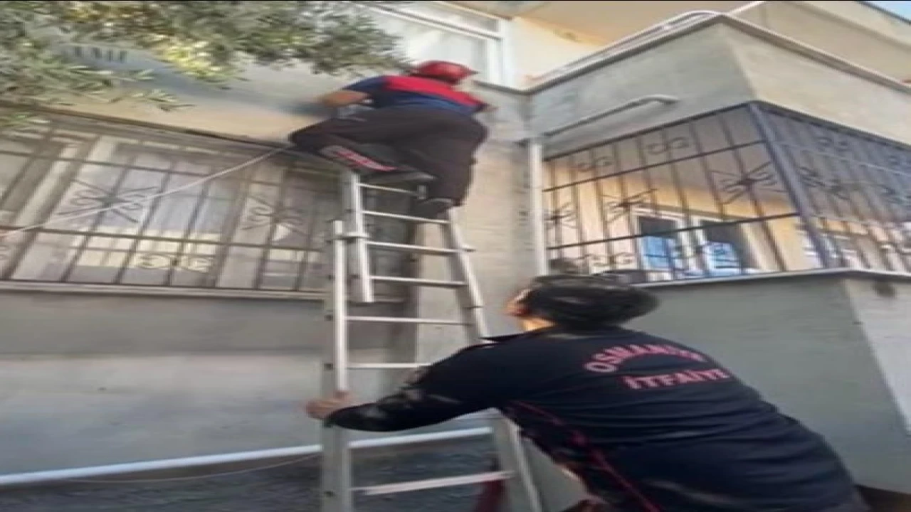 Olay, Merkez Dumlupınar Mahallesinde küçük çocuk, oturdukları iki katlı binanın dış demir kapısını kilitledikten sonra içeride mahsur kaldı. Durumu fark eden aile, önce çocuğu kapıyı açması için ikna etmeye çalıştı. Ancak çabalar sonuçsuz kalınca 112 Acil Çağrı Merkezi’ni arayarak yardım istedi. İhbar üzerine olay yerine Osmaniye Belediyesi İtfaiye Müdürlüğü kurtarma ekipleri sevk edildi. Hızlıca belirtilen adrese ulaşıp uzatma merdiveni kullanarak binanın balkonundan içeri giren itfaiye eri, içeride yalnız kalan küçük çocuğu kucağına alarak güvenli şekilde dışarı çıkardı. Aile bireyleri, itfaiye ekiplerine teşekkür etti.