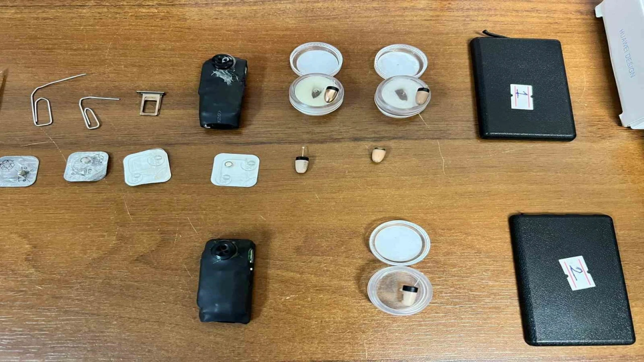 Araç kontrol edildiğinde kopya düzeneğinde kullanılan dijital materyaller başta olmak üzere; 35 bin TL para, 3 adet kulak içi kulaklık ve pilleri, 1 gömleğe iliştirilecek seviyede kameralı cihaz, 1 wifi cihazı, 1 sim takılabilen bluetooth cihazı, 1 cımbız, 5 ayrı sürücü ve sınav giriş belgesi, 3 sürücü kursu makbuzu, 1 adet bayan, 2 adet erkek içerisine özel bölme yapılmış düzenekli ayakkabı ve 2 adet özel bölmeli iç çamaşırı ele geçirildi.