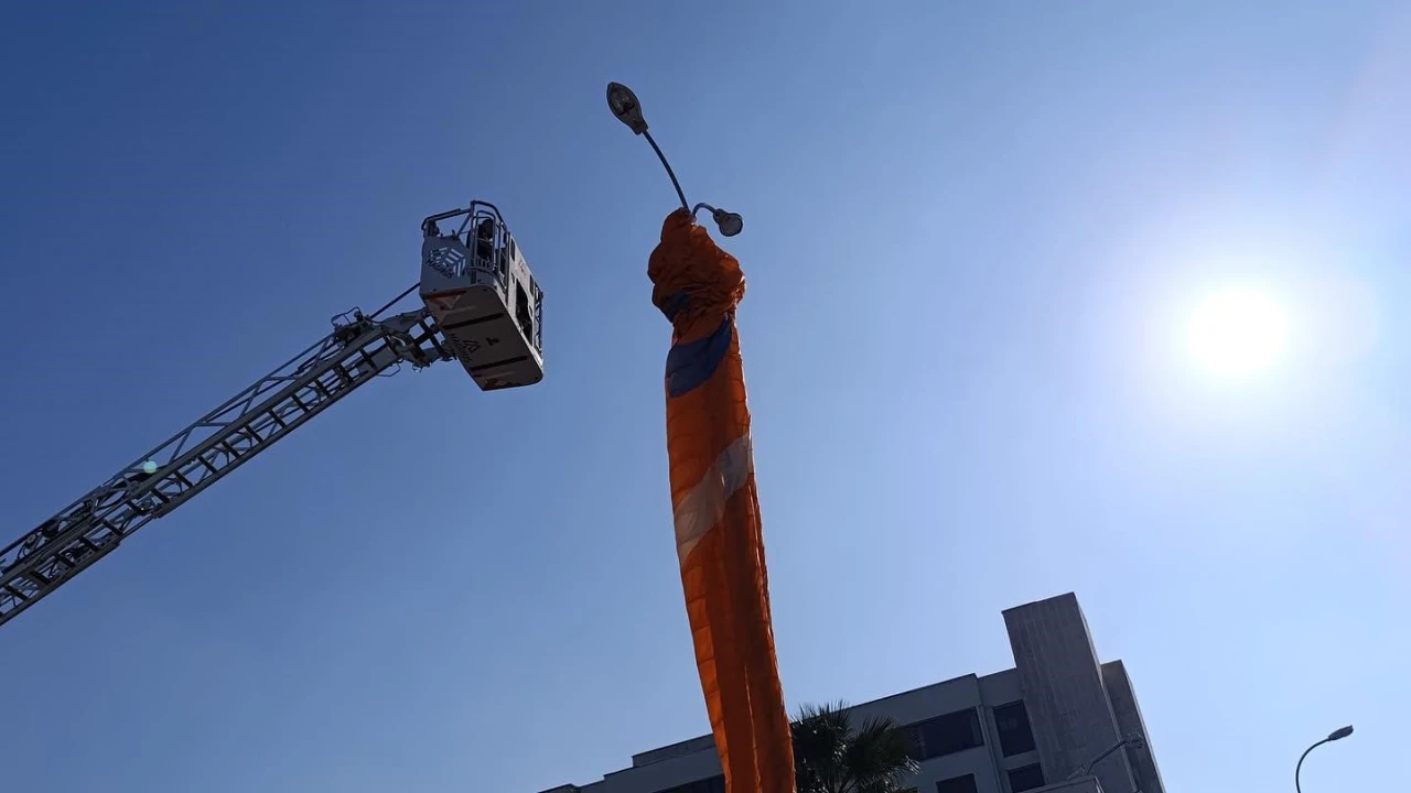 HATAY'IN İSKENDERUN İLÇESİNDE PARAŞÜT İLE UÇUŞ GERÇEKLEŞTİREN PARAŞÜTÇÜ AYDINLATMA DİREĞİNE TAKILARAK MAHSUR KALDI.