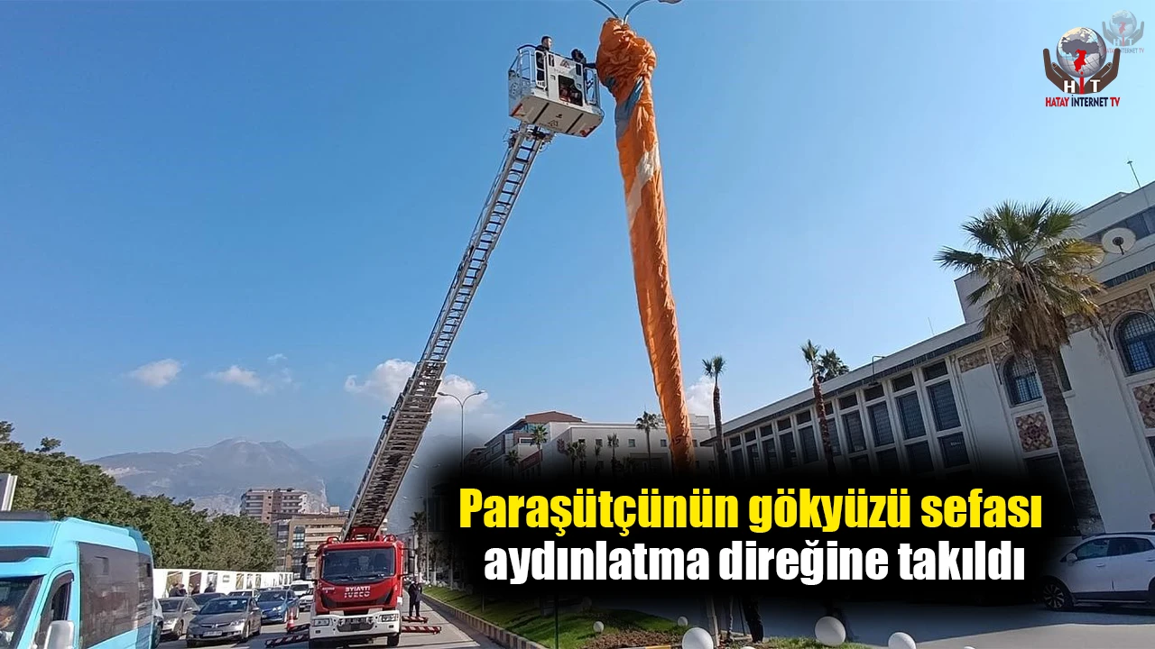 HATAY (İHA) - Hatay'ın İskenderun ilçesinde paraşüt ile uçuş gerçekleştiren paraşütçü aydınlatma direğine takılarak mahsur kaldı.