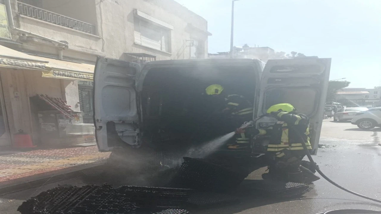 Mersin’de park halindeki hafif ticari araç alev alev yandı.