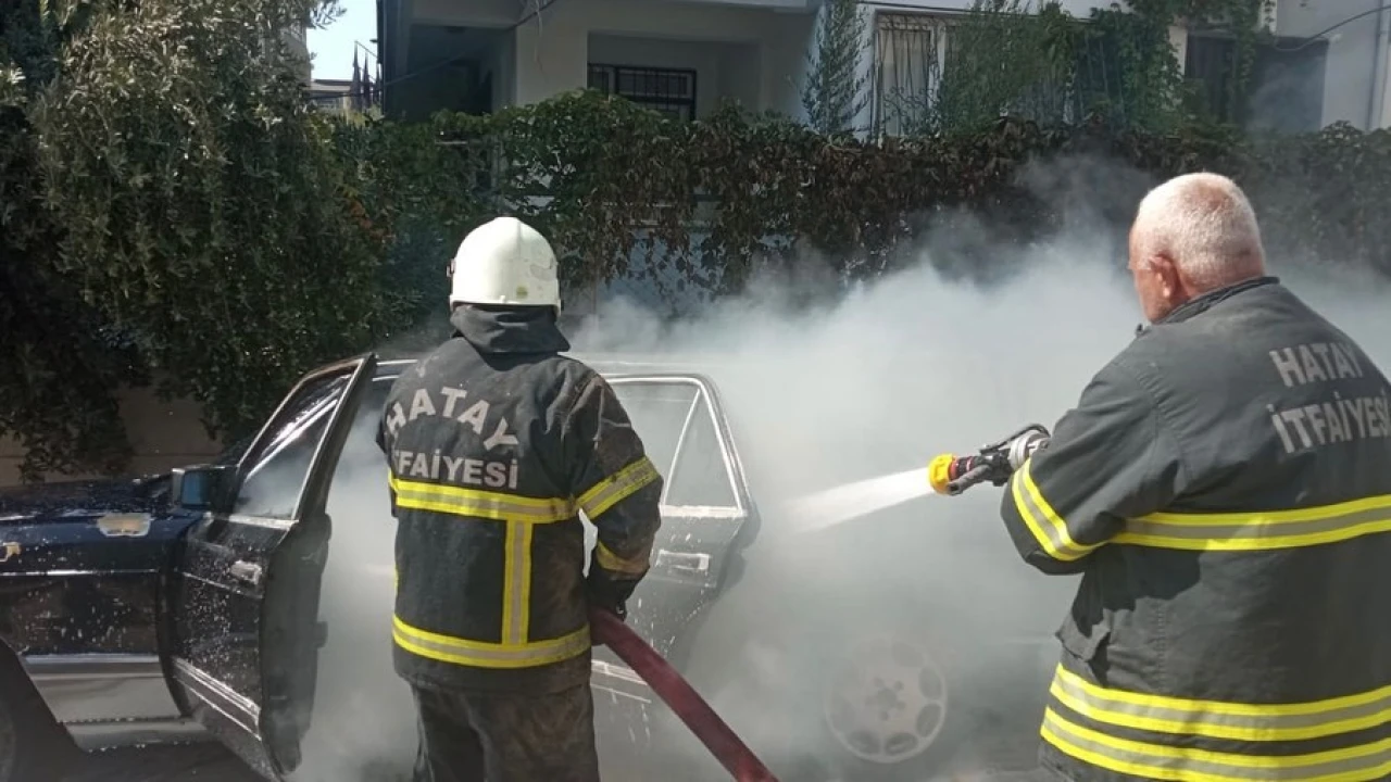 Hatay’da park halindeyken alevlere teslim olan otomobildeki yangın çevreye sıçramadan söndürüldü.