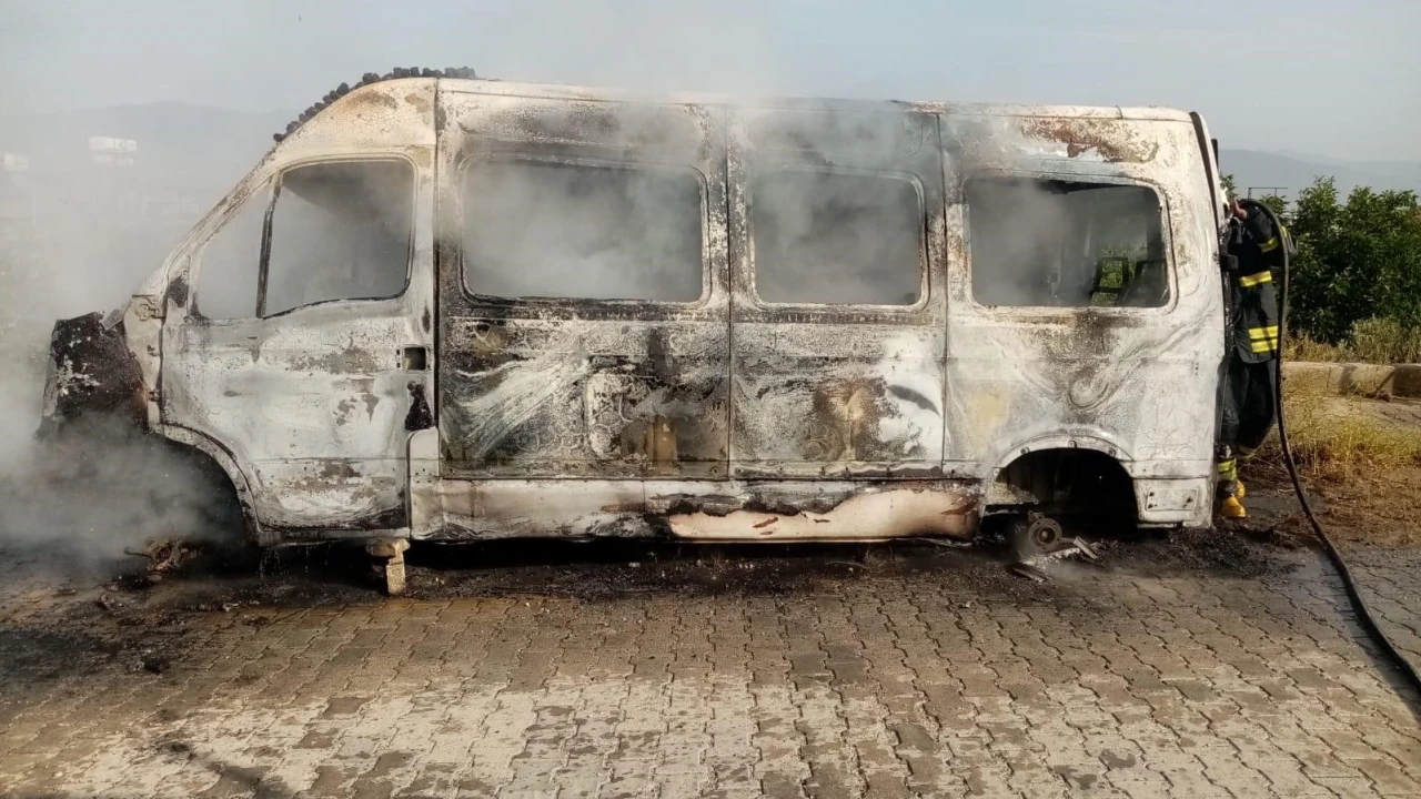Hatay’da park halinde bulunan hurda minibüs alevlere teslim oldu.