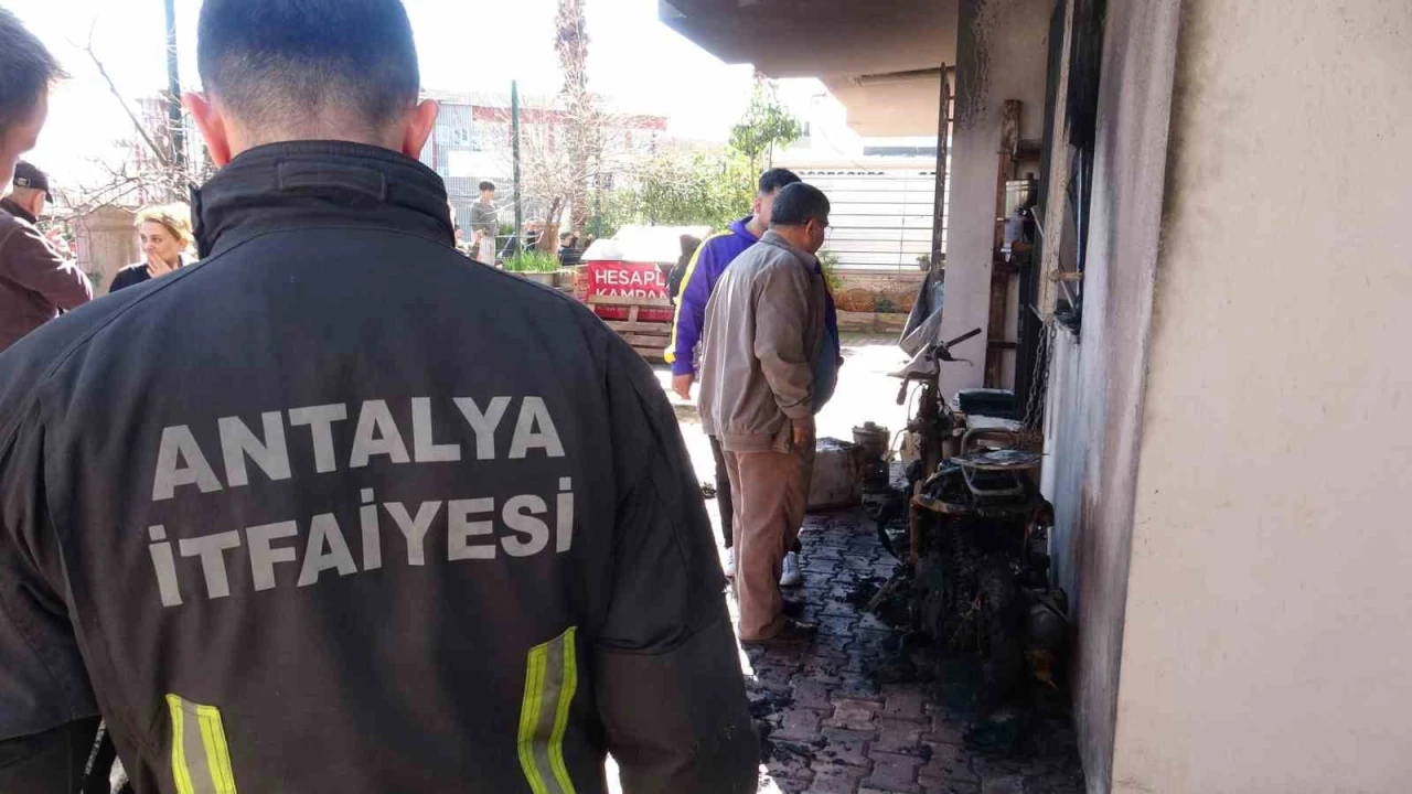 İhbarla verilen adrese gelen Antalya Büyükşehir Belediyesi İtfaiye Daire Başkanlığı’na bağlı ekipler, yangına müdahale ederek alevler üst katlara sıçramadan söndürdü. Yangın nedeniyle motosiklet kullanılamaz hale gelirken, alevlerin sıçradığı dairede küçük çaplı maddi hasar meydana geldi. Kültür Mahallesi Muhtarı Hasan Yavaşlar, "Komşular hemen koşmuş, yanında bir araç da varmış. Neredeyse araç da yanıyormuş. İtfaiye zamanında gelip müdahale etmese binanın üst katları yanacakmış neredeyse. Evin içine de sıçramış. Neden çıktığı şu anda belli değil" dedi.