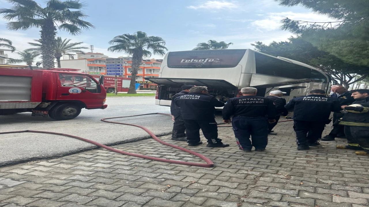 Antalya’nın Manavgat ilçesinde park halindeki otobüsün motor bölümünde çıkan yangın itfaiyenin hızlı müdahalesi ile büyümeden söndürüldü.