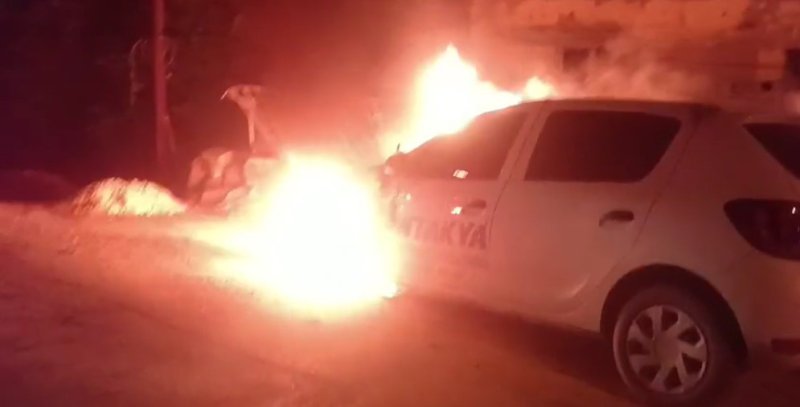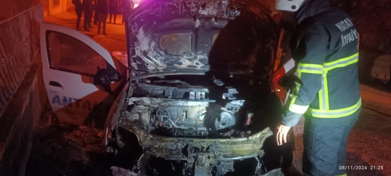 HATAY (İHA) - Hatay'ın Defne ilçesinde sürücü eğitim aracı olarak kullanılan otomobil, park halindeyken alevlere teslim oldu.