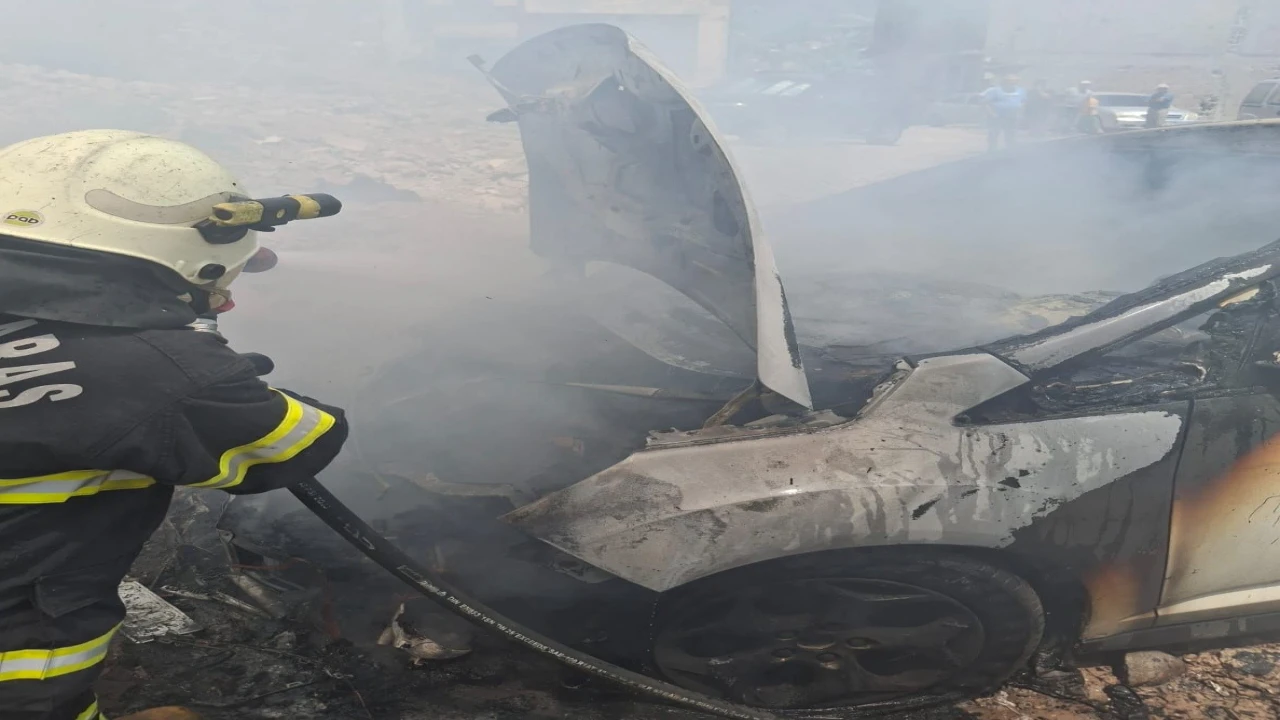KAHRAMANMARAŞ'TA PARK HALİNDE BİR ARAÇTA ÇIKAN YANGIN İTFAİYE EKİPLERİ TARAFINDAN SÖNDÜRÜLDÜ.
