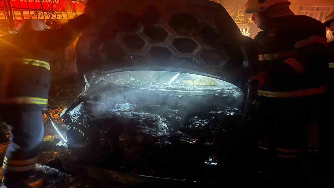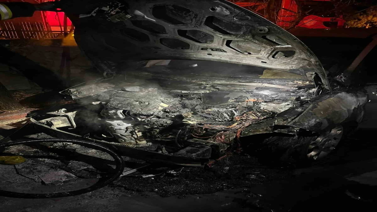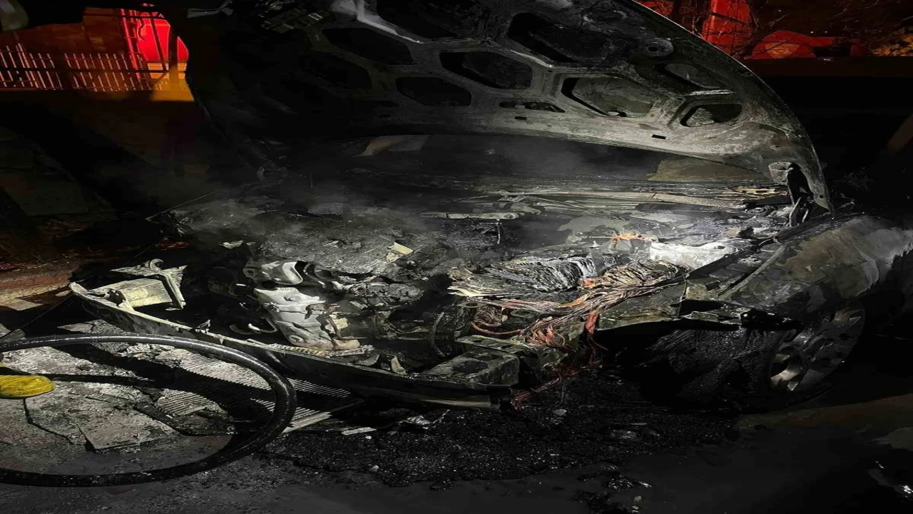 Yangında otomobilin bir kısmı tamamen yanarak demir yığınına döndü.