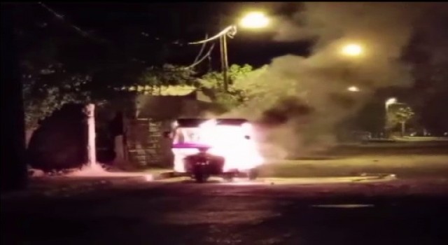 Adıyaman’da, park halinde bulunan triportör alev alev yanarak kullanılamaz hale geldi.