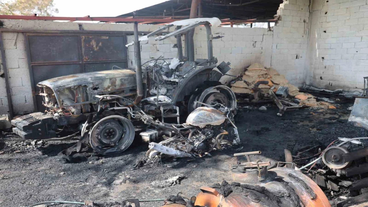 HATAY (İHA) - Hatay’da alevlere teslim olan garajdaki 1 traktör, 3 motosiklet ve tarım aletleri kullanılmaz hale geldi.