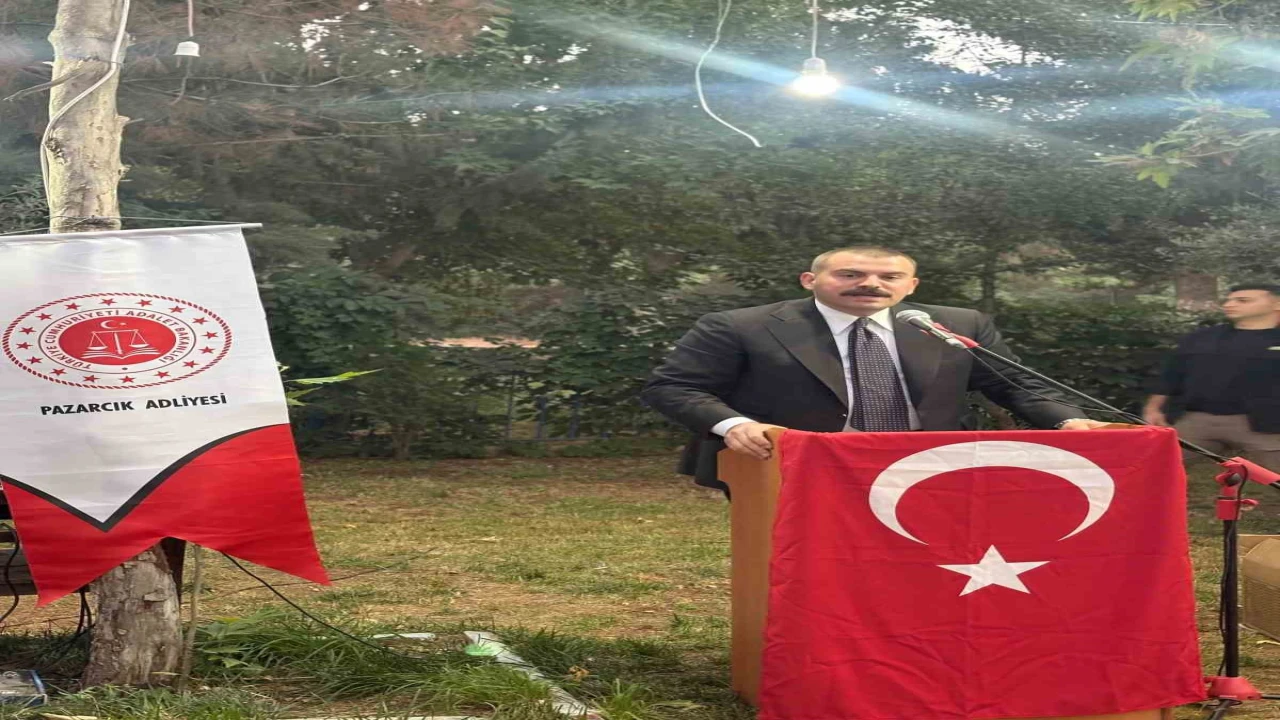 Pazarcık’ta yapılan programa Cumhuriyet Başsavcısı Gürkan Özkaynak, hakimler, savcılar, adliye personelleri ve aileler de katıldı. Programda tayin olan hakim ve savcılara plaket takdim edildi. Törende konuşma yapan Pazarcık Cumhuriyet Başsavcısı Gürkan Özkaynak, 6 Şubat depremleri hatırlatarak, "Feryatların, figanların dindirilmesinde, acıların paylaşılmasında, gözyaşlarının durmasında en tezahürü beklenen varlık adalettir. Mağdurlar, mazlumlar hatta failler bile adaleti beklediler o kara Şubat gecesinde. Necip milletimiz, büyük devletimiz o sese kulak vererek bizleri bu makamlara memur kıldılar" dedi.