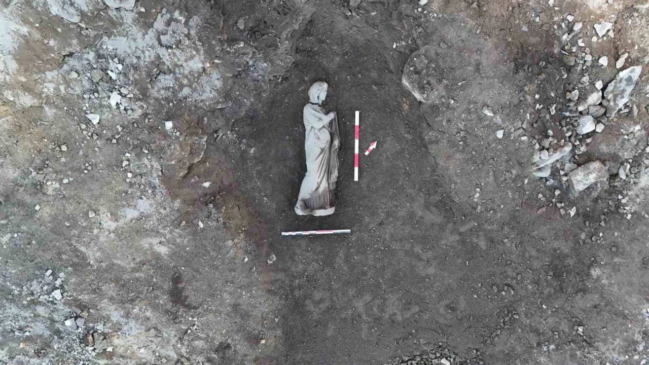 Afrodit heykelinin hemen yanında ortaya çıkarılan diğer heykel, 1,87 metre yüksekliğinde ve ayakta duran giyimli bir kadın figürü olarak dikkat çekiyor. İlk belirlemelere göre, Severuslar Dönemi’ne ait olduğu düşünülen bu heykelin, bir rahibeye ya da kentin önde gelen kadın hayırseverlerinden birine ait olabileceği tahmin ediliyor. Aynı alanda bulunan üçüncü heykel ise iki parça halinde ortaya çıkarılan giyimli bir kadın figürü olup, diğer heykelle benzerlik gösteriyor.