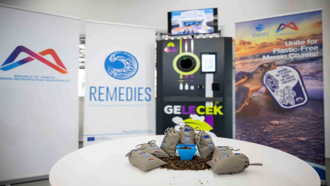 Mersin Büyükşehir Belediyesi, ‘Plastiksiz Mersin sahilleri için birleşiyoruz’ projesi kapsamında ’Akıllı Atık Otomatı’ sistemi kurdu. Otomat sayesinde, atıkların geri dönüşüm sürecine dahil edilmesi sağlanırken, toplanan plastik atıklardan küçük bitki saksıları üretiliyor.
