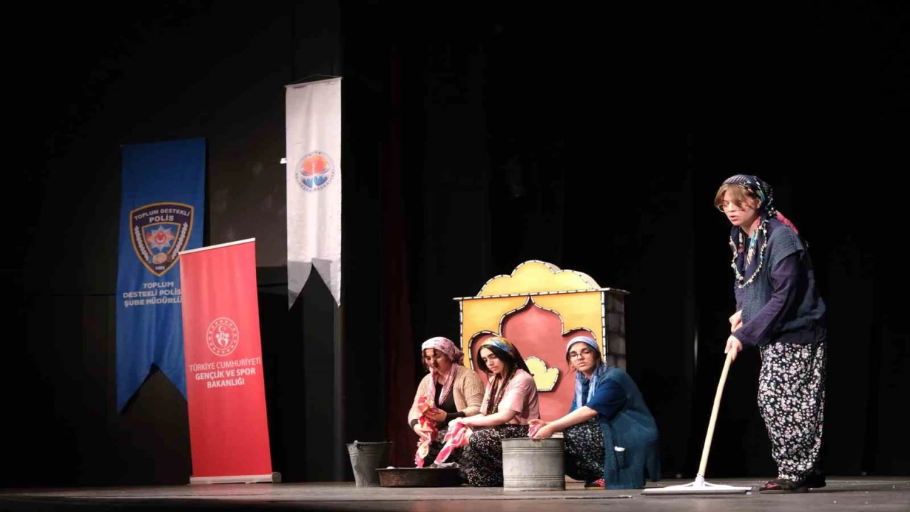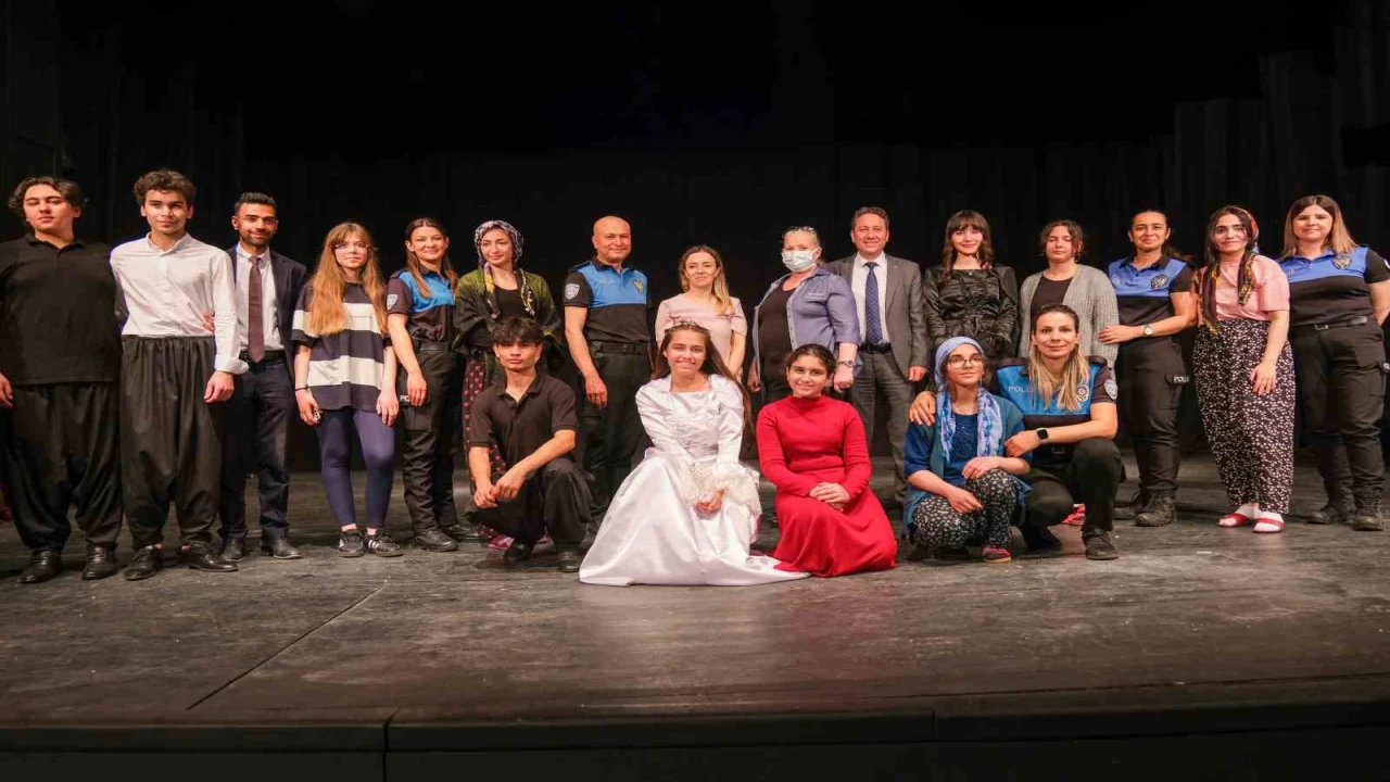 ADANA’DA SAHNELENEN "BİR KADININ RÜYASI" TİYATRO OYUNUNDA ÖĞRENCİLERLE BİRLİKTE BİR POLİS DE SAHNE ALDI.